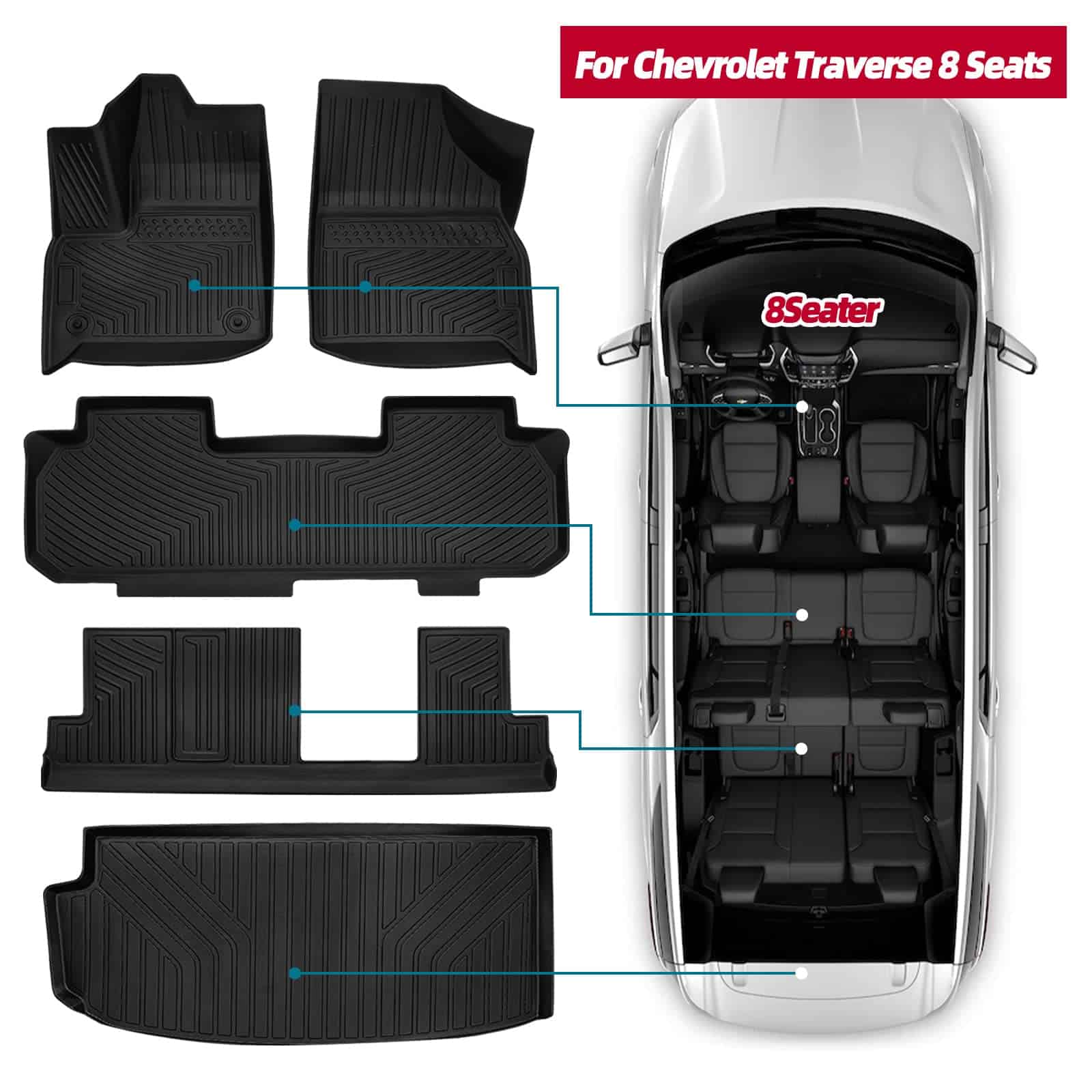 Tapete para suelo y tapetes para maletero Naibeve, compatibles para (Solo 8 Asientos) Chevrolet Traverse 2018 2019 2020 2021 2022 2023 con Banco de la 2da fila