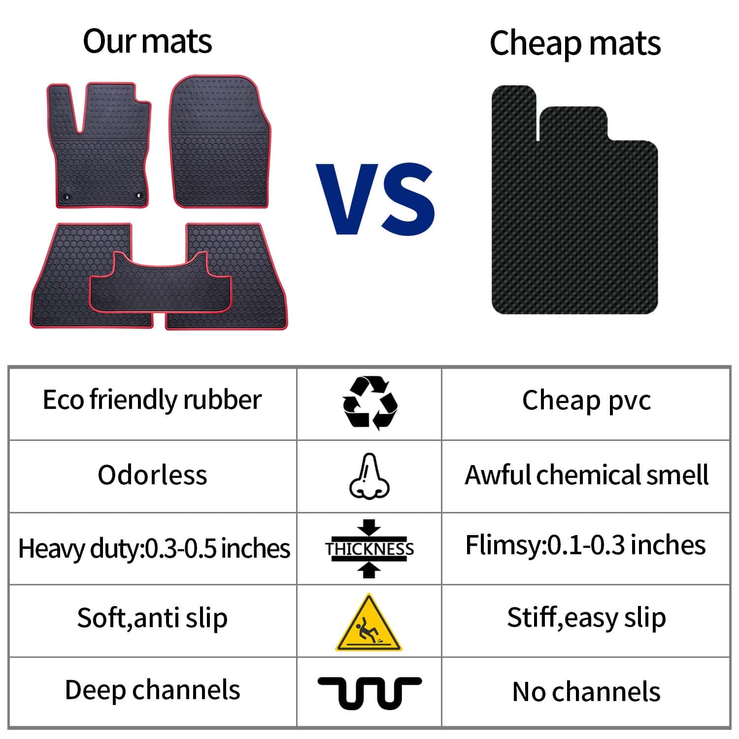 Tapete de auto de alta calidad y material saludable: este tapete para auto está hecho de goma suave ecológica, inodora incluso a altas temperaturas, para todo tipo de clima, -30 a 160, libre de formaldehído, sin olor químico, no dañará su salud. Suave, flexible, se dobla fácilmente, el tapete de auto grueso y resistente proporcionará más durabilidad. Diseño único y personalizado: el diseño profundo de hexágonos mantiene todos los objetos dentro de los tapetes, ayuda a que el piso de su auto resista daños por arena, barro, agua, suciedad, aceite, gas, ácido de la batería y todo lo demás, mantiene la alfombra limpia y seca, fácil de limpiar, tapete de piso antideslizante, aumenta el valor de reventa de su vehículo. Fácil instalación y limpieza: todos nuestros tapetes son convenientes para la limpieza e instalación. Limpieza rápida y fácil (con agua) para que la alfombra de su auto luzca bonita y como nueva. Garantía de un año: Ucaskin tiene como objetivo proporcionar los mejores productos y servicios a nuestros clientes y sus autos. Atrévase a probar nuestro tapete para auto de alta calidad y ecológico y comparta su experiencia con otros compradores, ofrecemos devoluciones gratuitas de 30 días y garantía de un año.