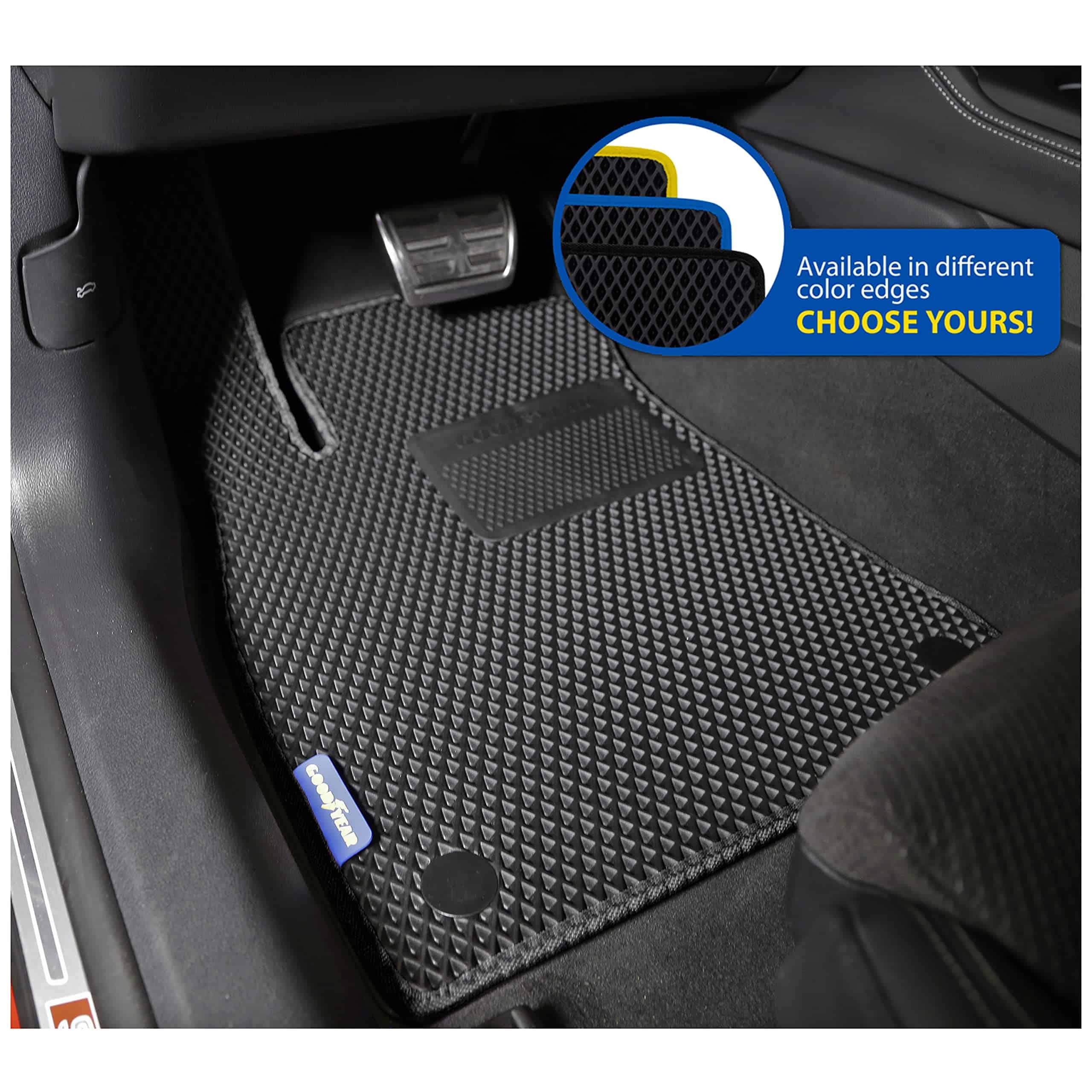 3. Durabilidad y resistencia reforzadas Los tapetes Goodyear para automóviles incluyen una almohadilla especial de termoplástico en el área de control del pedal para reducir el desgaste del piso; además, cuentan con una resistencia a temperaturas de -40 F a 122 F para cualquier clima.