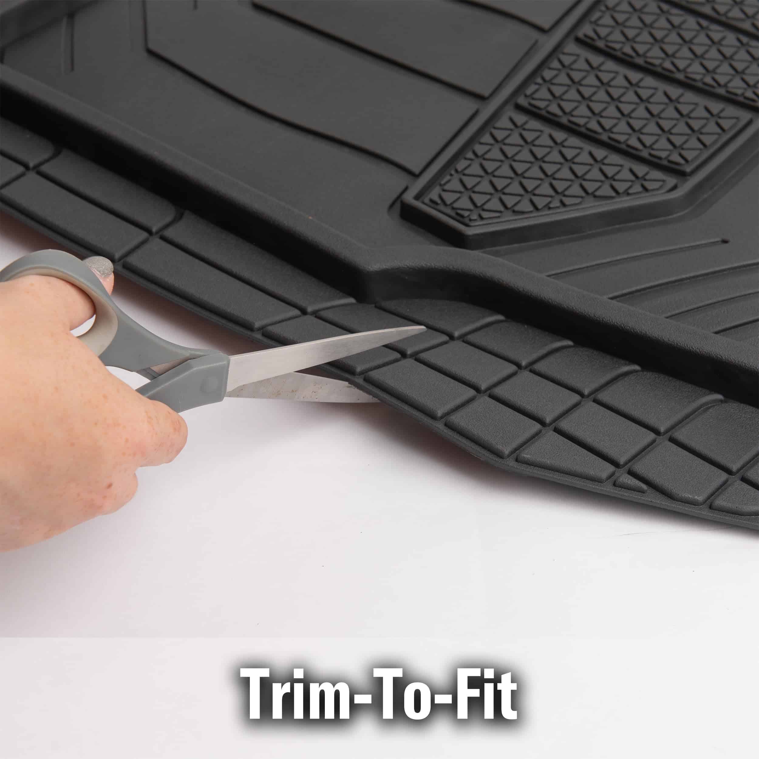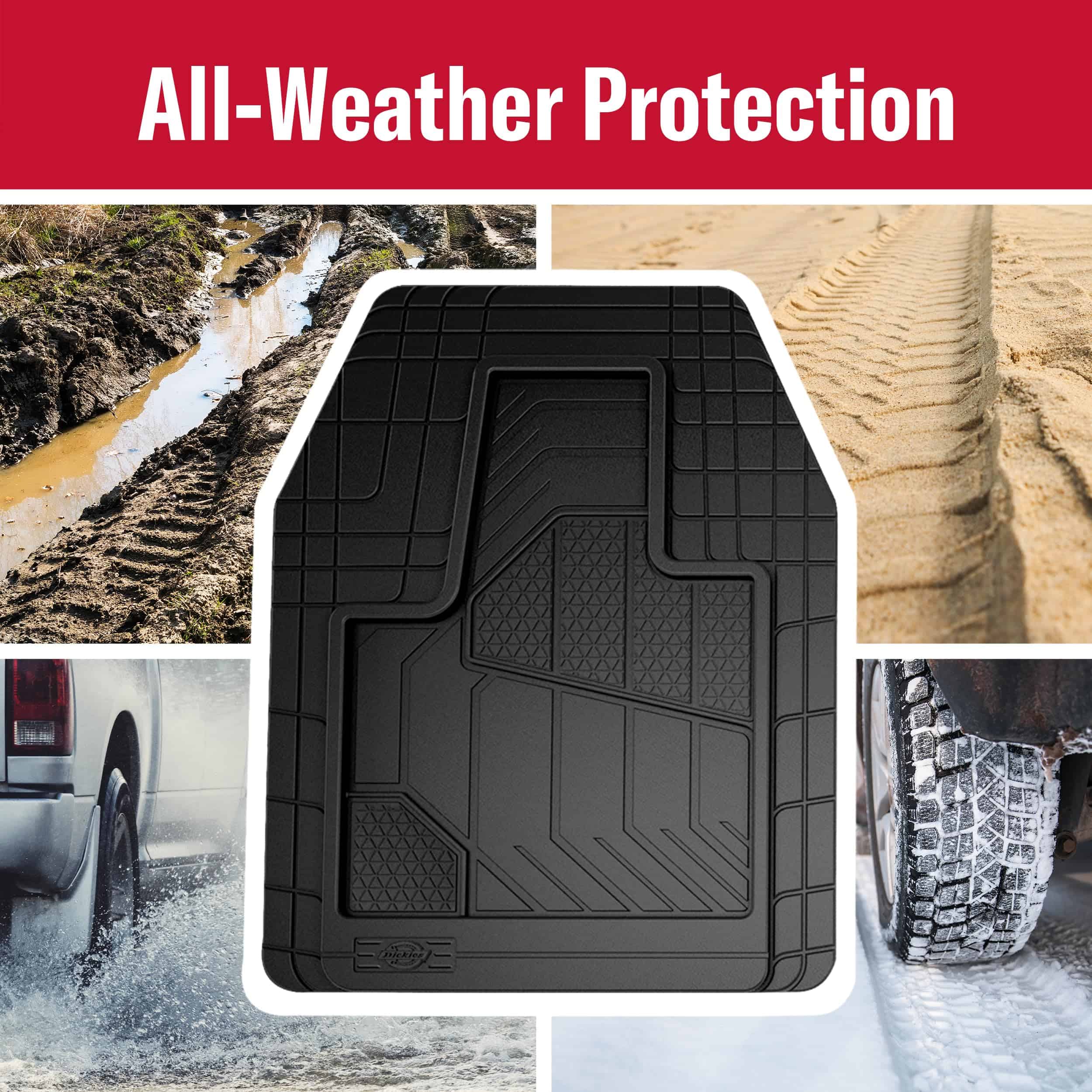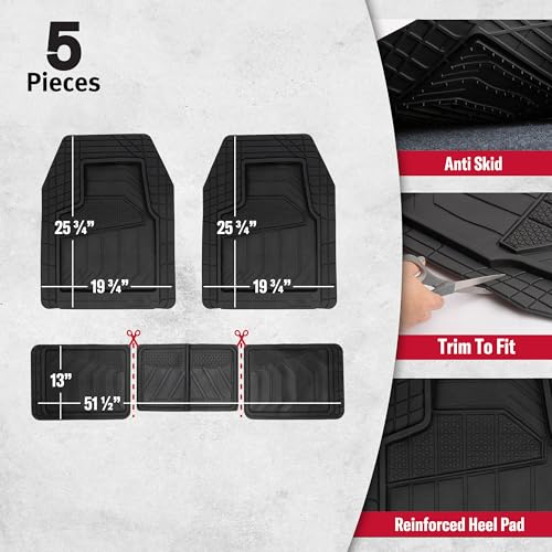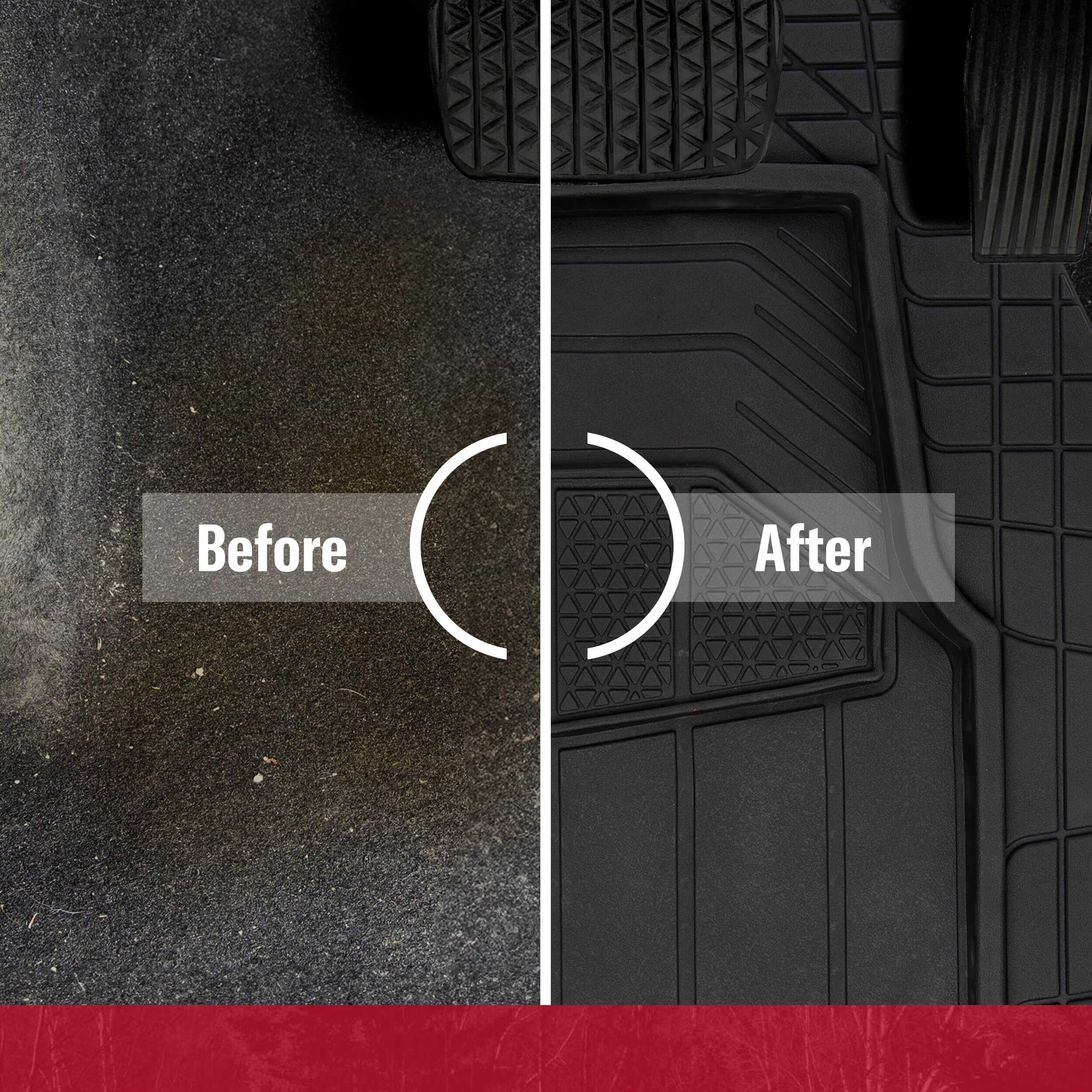 Lleve la defensa de su vehículo contra la suciedad al siguiente nivel con estos Tapetes para Automóvil de 5 Piezas de Máxima Cobertura en Negro de Dickies. Fabricados para brindar protección total, estos tapetes para automóvil ofrecen todo el rendimiento que necesita a una fracción del costo de los costosos forros para pisos personalizados. Estos duraderos tapetes de polímero cuentan con canales esculpidos y una bandeja profunda diseñada para atrapar agua, sal de carretera, barro y arena. El diseño universal recortable ofrece una instalación fácil ya sea que tenga un coche, camioneta, SUV o miniván. Las líneas de recorte grandes facilitan el corte de este juego completo de tapetes para coche al tamaño correcto. Los materiales y la ingeniería superiores permiten que este juego de tapetes para automóvil se mantenga flexible incluso en las temperaturas más frías. Los tapetes delanteros cuentan con diseños únicos para distinguir fácilmente entre los lados derecho e izquierdo. El corredor trasero puede usarse como una sola pieza o recortarse en tres piezas para ofrecer la cobertura completa de cinco piezas. Cada tapete todo clima también cuenta con un respaldo antideslizante para evitar deslizamientos y desplazamientos. La limpieza es fácil con jabón y agua. Confíe en estos Tapetes para Automóvil de 5 Piezas de Máxima Cobertura en Negro de Dickies por una construcción de calidad de una marca en la que puede confiar.