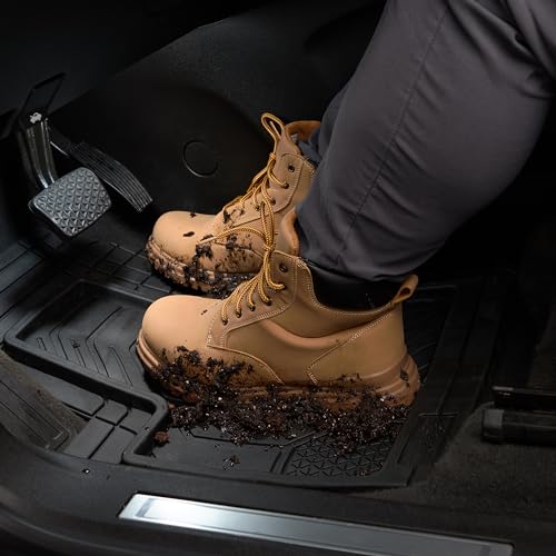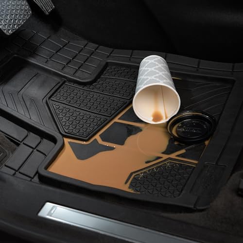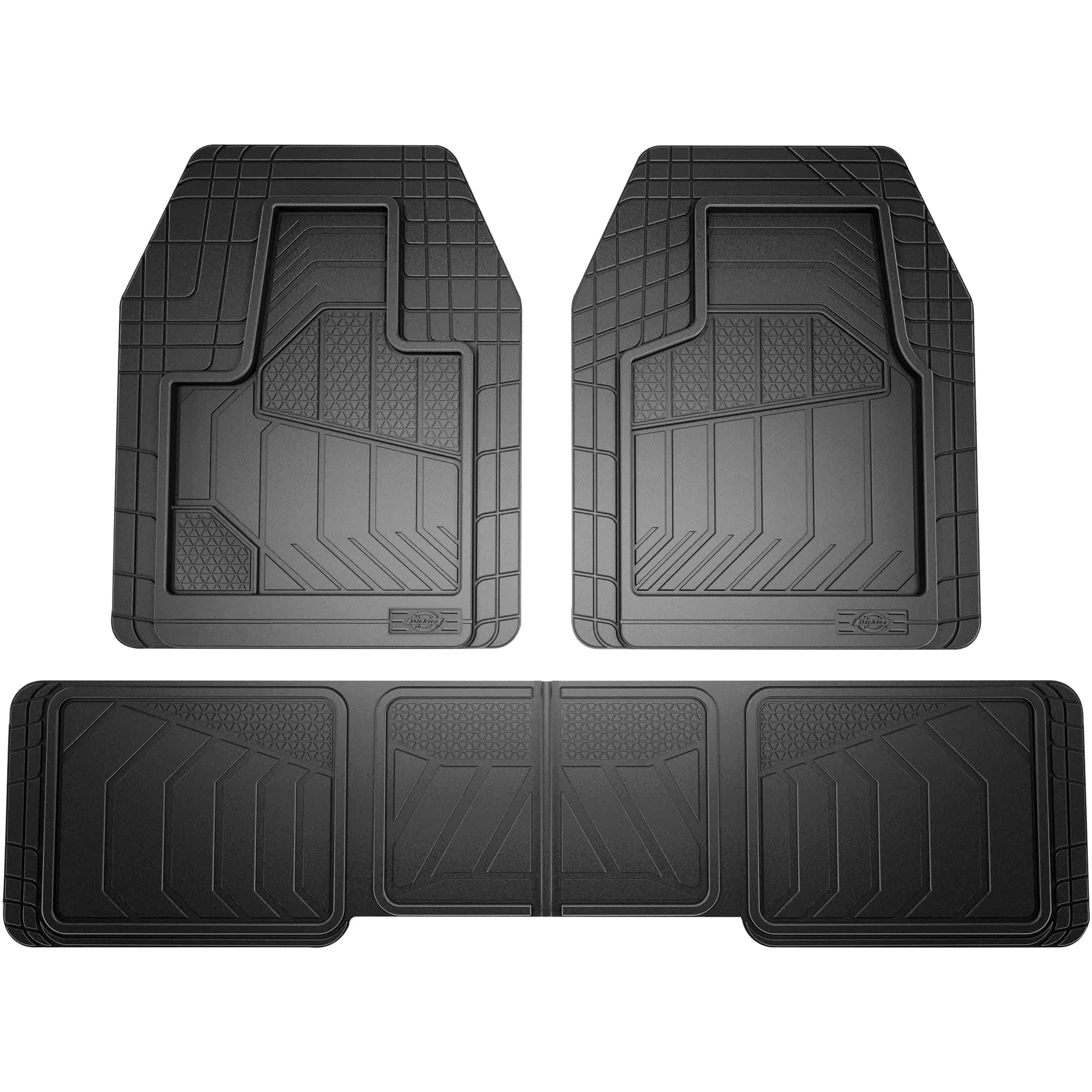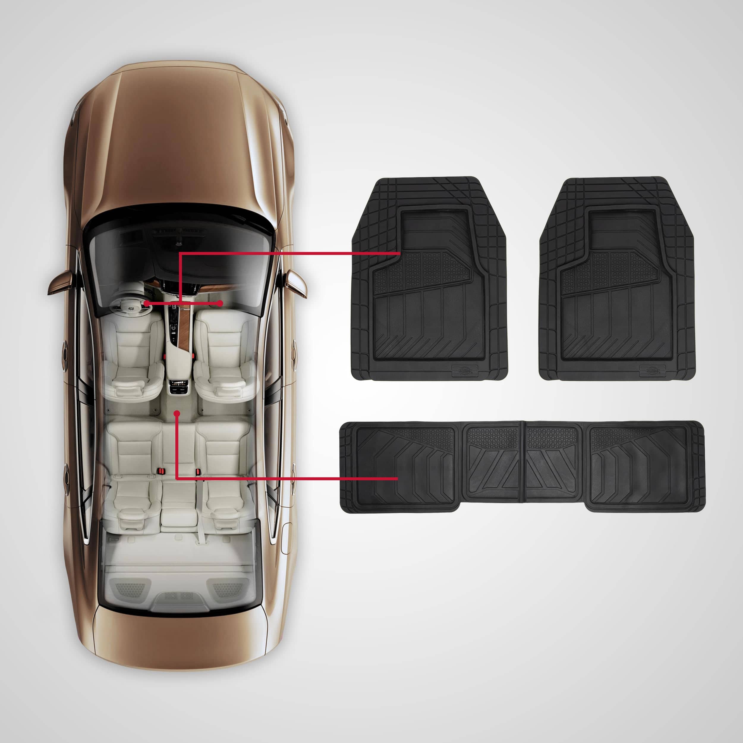 Lleve la defensa de su vehículo contra la suciedad al siguiente nivel con estos Tapetes para Automóvil de 5 Piezas de Máxima Cobertura en Negro de Dickies. Fabricados para brindar protección total, estos tapetes para automóvil ofrecen todo el rendimiento que necesita a una fracción del costo de los costosos forros para pisos personalizados. Estos duraderos tapetes de polímero cuentan con canales esculpidos y una bandeja profunda diseñada para atrapar agua, sal de carretera, barro y arena. El diseño universal recortable ofrece una instalación fácil ya sea que tenga un coche, camioneta, SUV o miniván. Las líneas de recorte grandes facilitan el corte de este juego completo de tapetes para coche al tamaño correcto. Los materiales y la ingeniería superiores permiten que este juego de tapetes para automóvil se mantenga flexible incluso en las temperaturas más frías. Los tapetes delanteros cuentan con diseños únicos para distinguir fácilmente entre los lados derecho e izquierdo. El corredor trasero puede usarse como una sola pieza o recortarse en tres piezas para ofrecer la cobertura completa de cinco piezas. Cada tapete todo clima también cuenta con un respaldo antideslizante para evitar deslizamientos y desplazamientos. La limpieza es fácil con jabón y agua. Confíe en estos Tapetes para Automóvil de 5 Piezas de Máxima Cobertura en Negro de Dickies por una construcción de calidad de una marca en la que puede confiar.