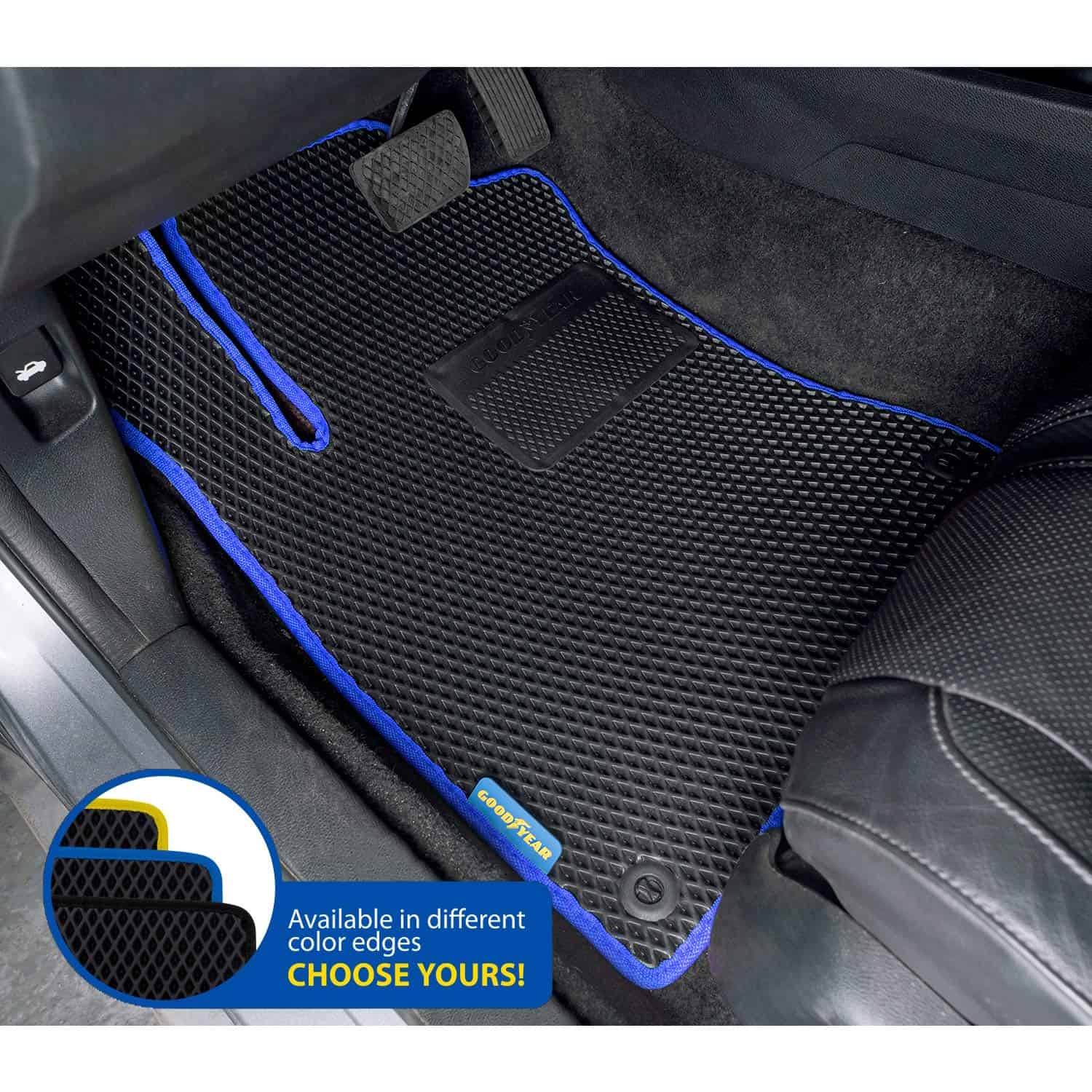 Mantenga su ropa, zapatos y automóvil más limpios con los tapetes para pisos a medida para todo tipo de clima diseñados por Goodyear. Pasa mucho tiempo entrando y saliendo de su vehículo, especialmente si constantemente va de un lado a otro al trabajo o carga y descarga a sus hijos todo el día. Eso significa que es importante que tenga tapetes para pisos que mantengan sus pisos sin manchas, suciedad y mojados cada vez que alguien entra. Creamos estos tapetes para pisos de automóviles a medida de Goodyear con tecnología Diamond Shape para garantizar la mejor cobertura y protección posibles, para que pueda mantener su automóvil luciendo más nuevo por más tiempo. Una mejor protección para el piso se une a una mayor comodidad. El diseño innovador de nuestros tapetes Diamond Shape no solo les permite atrapar la suciedad, barro y líquidos con más eficacia, sino que también mejora su experiencia de conducción. Completo con un respaldo antideslizante y sujetadores para mantenerlos en su lugar, así como un pad de talón que protege el piso y hace que la conducción sea más cómoda, puede concentrarse en la carretera con una mayor confianza. Detalles del producto: – Tapetes de precisión Goodyear (Juego de 5 piezas Negro); – Caucho resistente para todo tipo de clima; – Reverso de malla antideslizante; – Tecnología Diamond Shape; – Atrapa suciedad, barro, polvo y líquidos; Limpieza rápida y fácil. Incluye tapetes delanteros y traseros y separadores (si corresponde). Incluye dos (2) marcos de placa de licencia de cortesía. Proteja los pisos y tejidos de su vehículo con los tapetes a medida de Goodyear diseñados con precisión. Adquiéralos ahora haciendo clic en Agregar al carrito arriba.