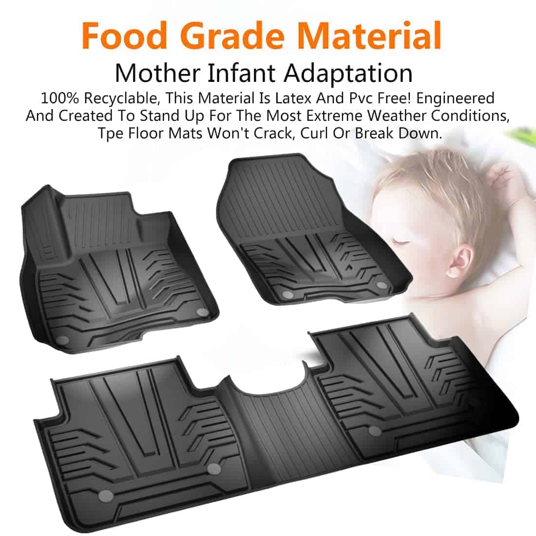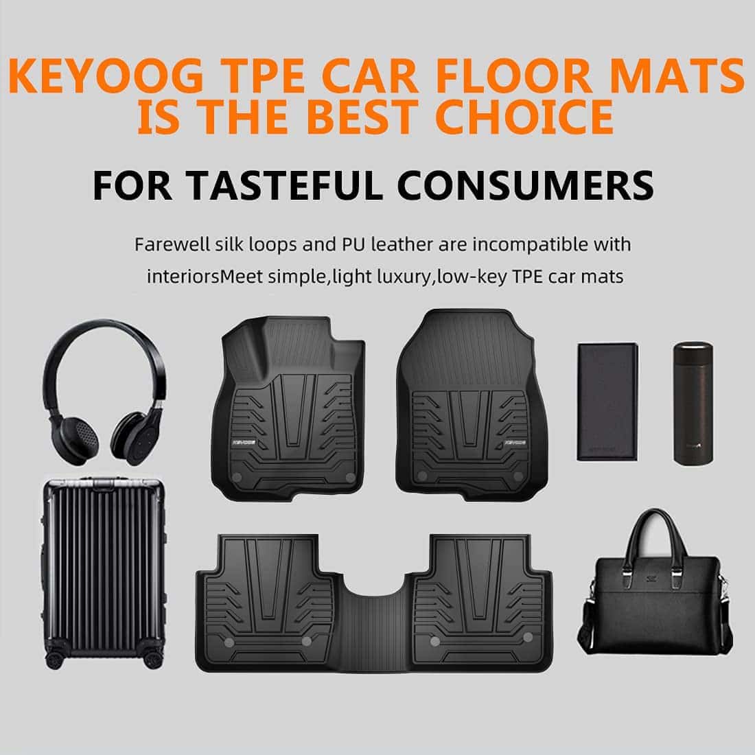 2. MATERIAL EXCELENTE: Los tapetes específicos para autos KEYOOG, fabricados con nuevos materiales ecológicos de Elastómero Termoplástico (TPE), tienen características como no deformarse, no tener olores, cero formaldehído, fácil limpieza, etc., lo que puede mantener tu auto limpio y ordenado continuamente.