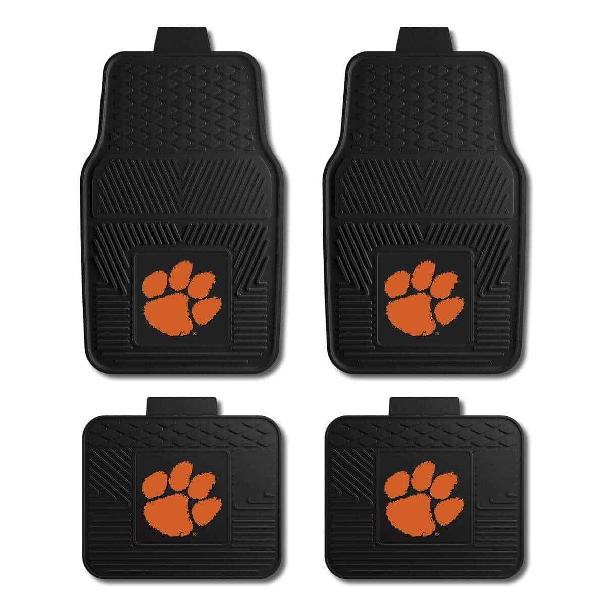 Tapetes para autos de la Universidad Clemson Tigers, Juego de 4 – Protección para Todo Tipo de Clima, Diseño de Reservorio Profundo, Ajuste Universal – Logo del Equipo de la NCAA en 3D – 29�x17� Delanteros – 14�x 17� Traseros
