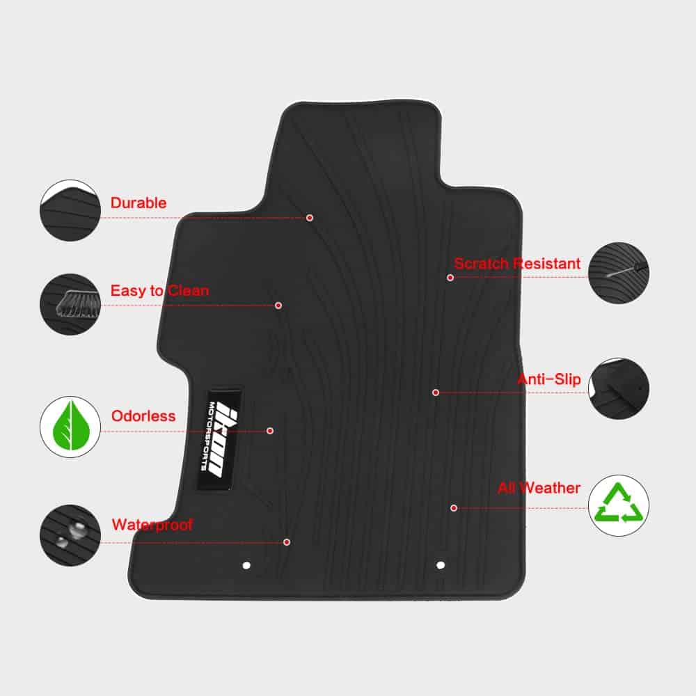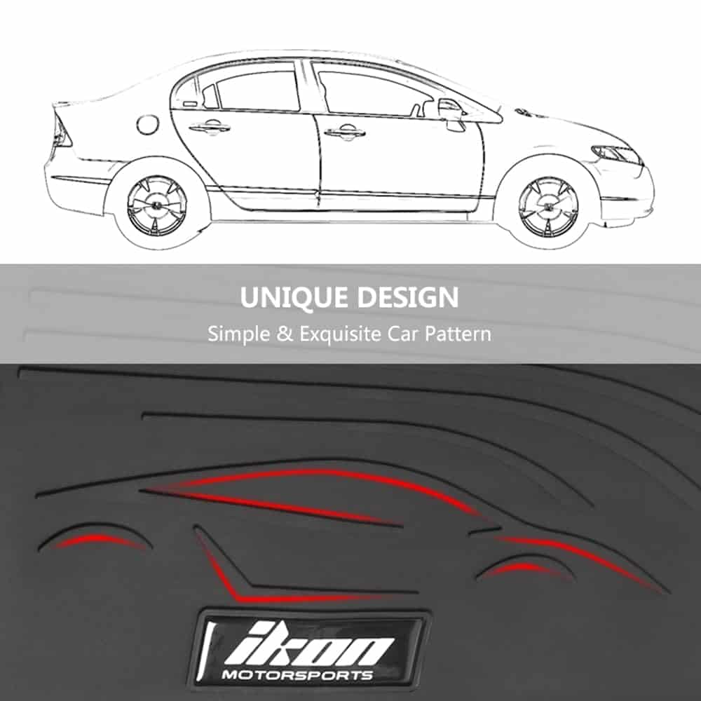 Compatible con Honda Civic 2 Puertas y 4 Puertas de Todos los Modelos. Material: Látex de Alta Calidad | Color: Negro | Estilo: Estilo IKON. Incluye: 1 Juego de Tapetes para el Piso (3 Piezas). Se Recomienda una Instalación Profesional. Garantía Limitada de 30 Días.