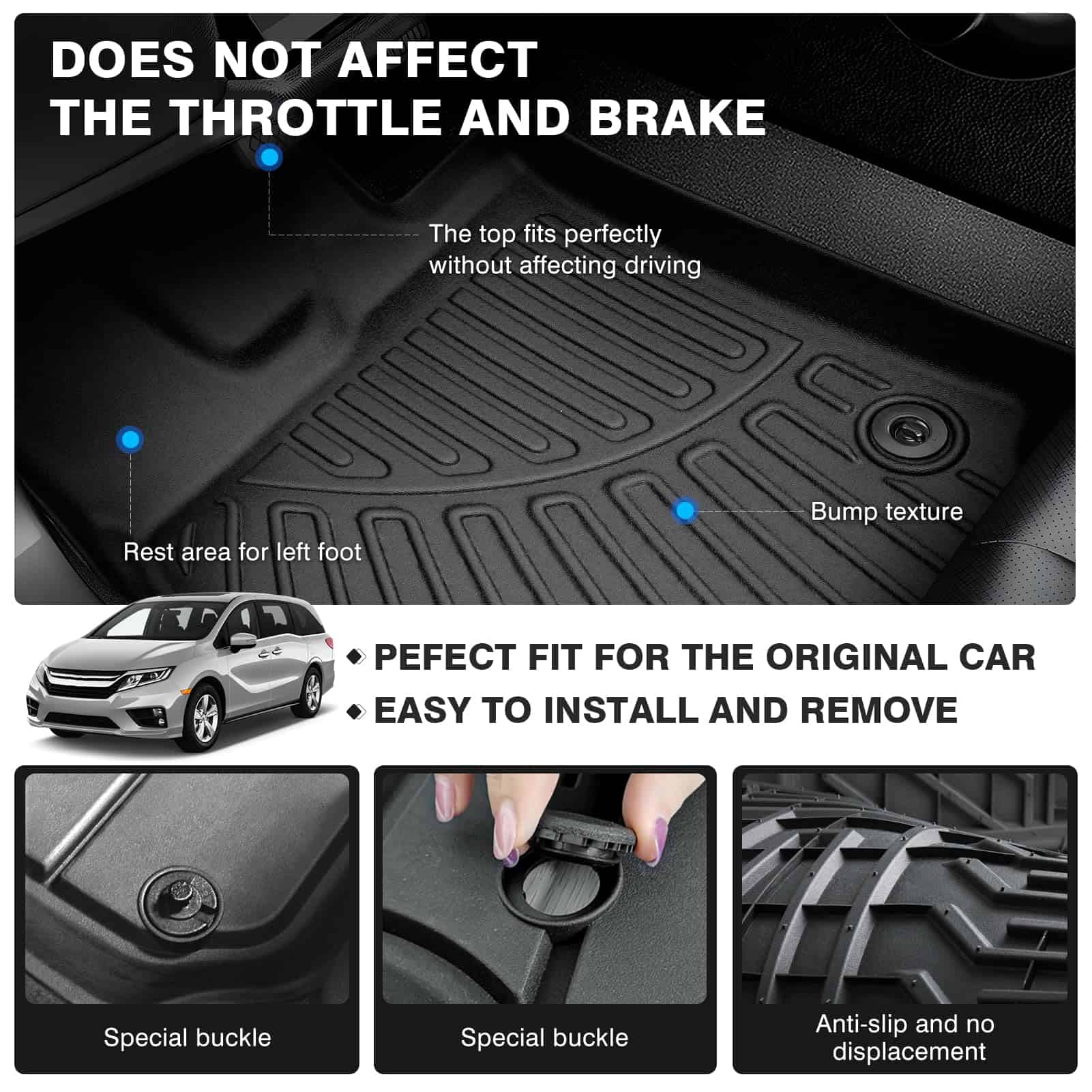 1. Ajuste perfecto: Estos tapetes para el piso están especialmente diseñados para Honda Odyssey 2018-2024. El revestimiento para el piso está hecho por escaneo láser digital de precisión 3D para proteger el espacio para los pies de su auto. Con un estilo moderno y duradero.