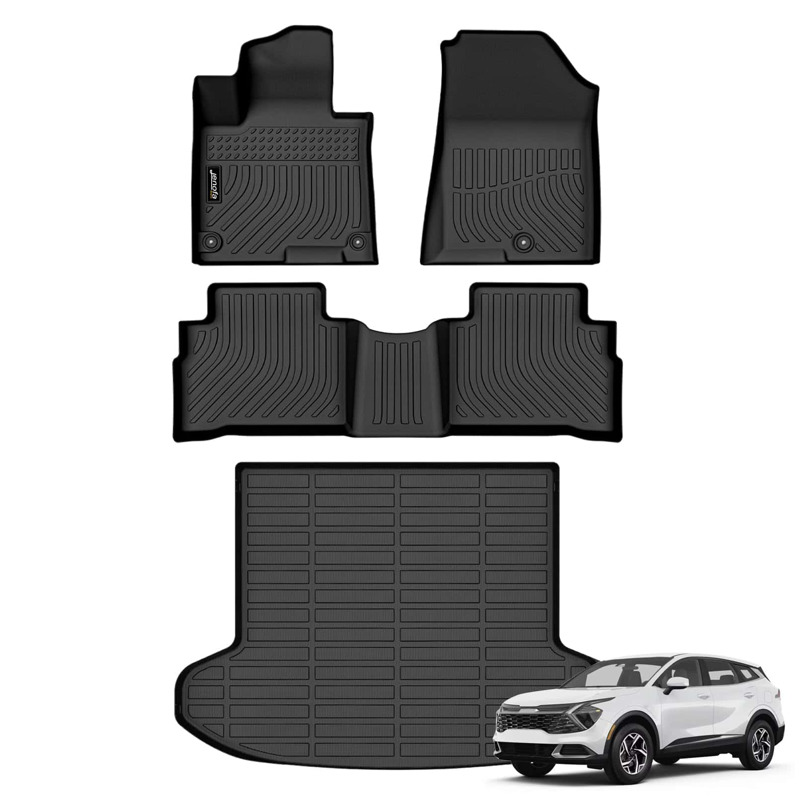 1. Kit de tapetes precisos Jenofa para Kia Sportage 2023-2025 incluye: 1 tapete para el asiento del conductor, 1 tapete para el asiento del pasajero delantero, 1 tapete para la segunda fila, 1 tapete para la carga. La tecnología de escaneo láser en 3D garantiza una coincidencia exacta con los datos originales de Kia Sportage, asegurando un ajuste cómodo y maximizando la protección completa para el piso original del automóvil y el área de carga. 2. Materiales premium TPE Los tapetes de carga y los tapetes de piso de Jenofa para Kia Sportage están construidos con materiales de elastómero termoplástico (TPE) de alta calidad, respetuosos con el medio ambiente, que ofrecen un equilibrio perfecto entre suavidad y durabilidad. No es necesario preocuparse por las arrugas causadas por el envío después de recibir el tapete, simplemente coloque el tapete en un lugar cálido (o use un secador de pelo) y su forma personalizada se restaurará. 3. Protección todo clima Los tapetes de coche Jenofa están diseñados para soportar las condiciones más difíciles, resistiendo el calor, el frío y el desgaste. Las pruebas rigurosas garantizan que se mantengan intactos, sin agrietarse ni rizar. Disfrute de una protección duradera para su Kia Sportage, sin importar el clima. 4. Limpieza sin esfuerzo Con los forros de piso Jenofa, es muy fácil mantener limpia el área de carga y el piso de su Kia Sportage. Lluvia, nieve, barro, hojas, arena, restos de comida y líquidos simplemente límpielos con un paño húmedo o retírelos para enjuagarlos y secarlos. Con su diseño de borde alto, no tendrá que preocuparse por la lluvia o la nieve que se filtra en su automóvil durante el mal tiempo. 5. Diseño elegante y funcional El conjunto de tapetes Jenofa está diseñado para una instalación sin esfuerzo e integración perfecta. Con un elegante color noir y una estética minimalista, mejoran la apariencia general mientras maximizan la practicidad con el interior de su Kia Sportage.