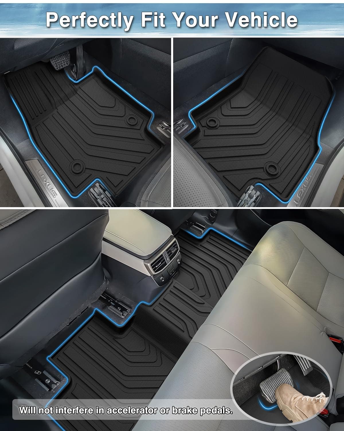 4. Borde elevado todo alrededor: El escaneo láser 3D digital hace que estos tapetes sean perfectamente compatibles con tu vehículo. Los tapetes para el piso de Lexus RX tienen bordes elevados en todo su contorno para evitar que líquidos y desechos lleguen a tu piso original. Asegúrate de que el desorden quede en el tapete para el piso y fuera de tu piso original limpio.