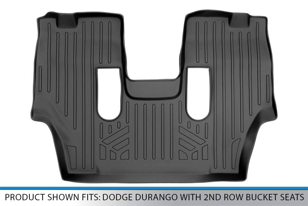 Tapetes a medida para el piso SMARTLINER para la tercera fila de Dodge Durango 2011-2021 con asientos de segunda fila tipo cubeta. Estos tapetes ofrecen protección resistente a las manchas contra todos los elementos, incluyendo nieve, lodo, arena y agua salada. El borde elevado y el diseño personalizado construido utilizando tecnología de escaneo de vehículos innovadora garantizan un ajuste perfecto para proteger el piso de alfombra de su vehículo del clima, derrames y cualquier desorden. Fáciles de limpiar con manguera o limpieza localizada con un paño húmedo usando jabón y agua, estos tapetes mejoran la apariencia general del interior de su automóvil con su diseño texturizado, antideslizante y elegante. Además, nuestra protección 100% inodora está hecha con una mezcla de plástico hule reciclable al 100% y polietileno para una opción ecológica.