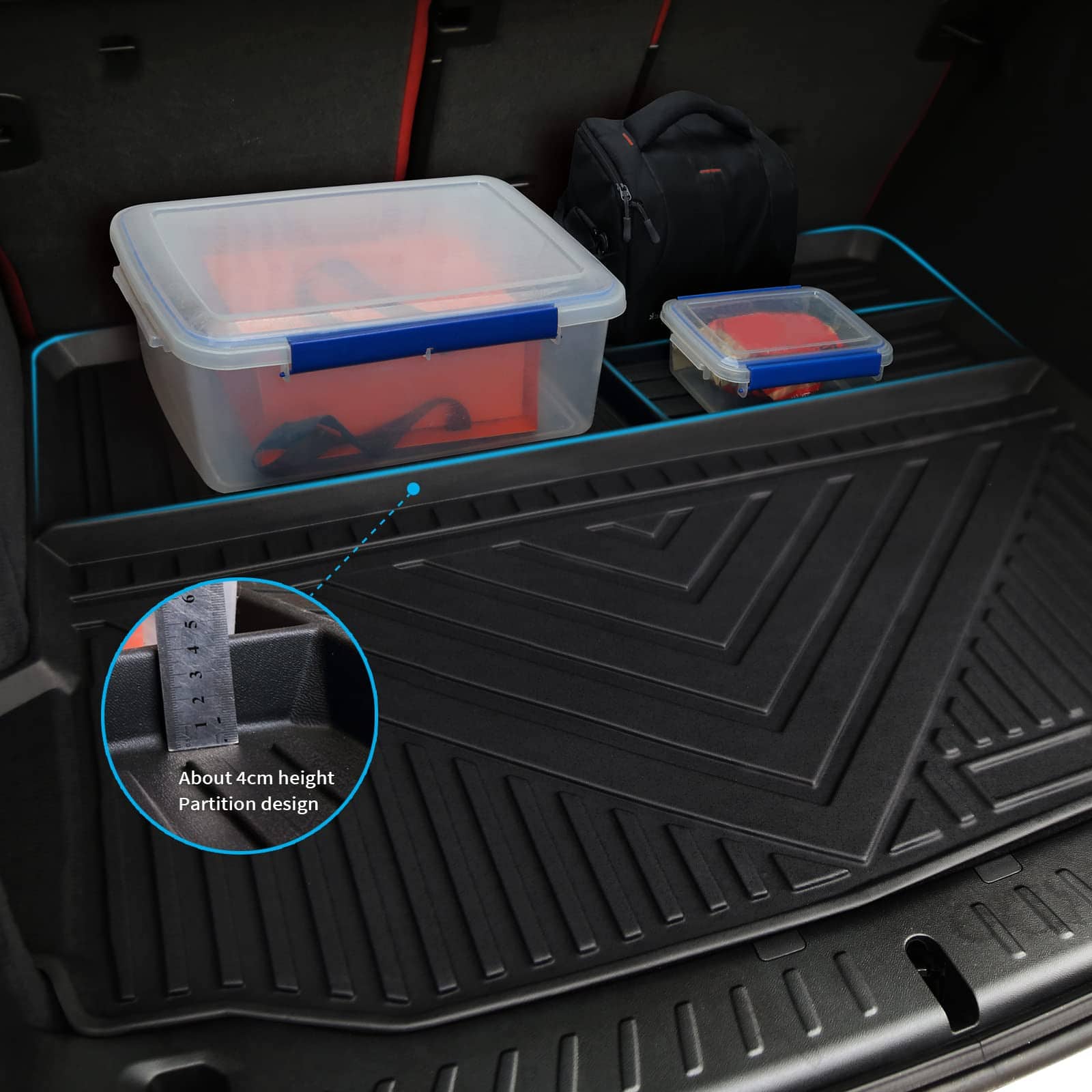 Tapete para maletero personalizado x3 para BMW X3 (G01) 2018-2023, específicamente diseñado con diseño de separación de caja de almacenamiento, más conveniente para clasificar y poner cosas, utilizando material de actualización de goma TPE más duradero, datos de escaneo 3D justo para su automóvil. Material Premium: Goma TPE, respetuosa con el medio ambiente, inodora, segura e higiénica, resistente al frío y al calor, impermeable y a prueba de nieve, fácil de limpiar. Protección para todas las estaciones: Proporcionar protección completa para el interior de su vehículo contra el polvo, la suciedad, la sal, la lluvia, la nieve, y para mantener los pisos de su vehículo limpios y prístinos en todas las estaciones. Fácil de limpiar: Gracias a la superficie resistente a la intemperie y a las manchas, simplemente retírelos de su vehículo y límpielos con una toalla húmeda o una manguera para que sus tapetes de piso luzcan como nuevos de nuevo. Servicio de garantía premium: Nuestros tapetes de piso le proporcionan tecnología para vehículos y protección las 24 horas con servicio al cliente las 24 horas. Si tiene alguna pregunta, puede contactarnos en cualquier momento, ¡prometemos hacer que cada cliente esté satisfecho!