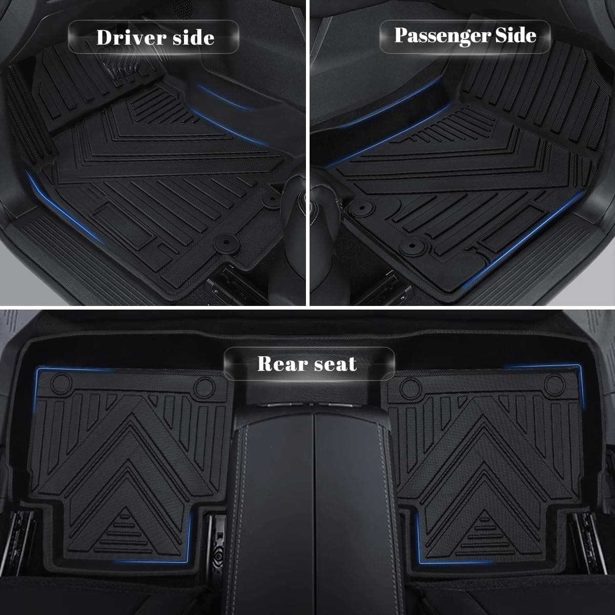 4. Fácil de instalar y limpiar – Con velcro en la parte posterior del forro trasero, la instalación es rápida y conveniente, y los tapetes se pueden quitar fácilmente para lavar.
