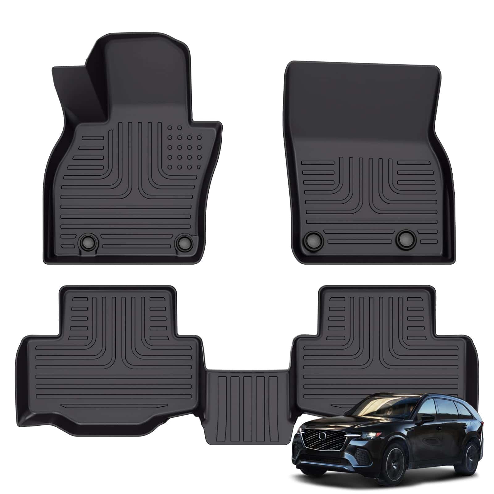 1. Modelos compatibles: Los tapetes para piso son compatibles con Mazda CX-70 & CX70 PHEV 2025. Escaneo láser 3D, completamente consistente con los datos del carro original, cubre de manera precisa el piso de tu auto y lo protege.