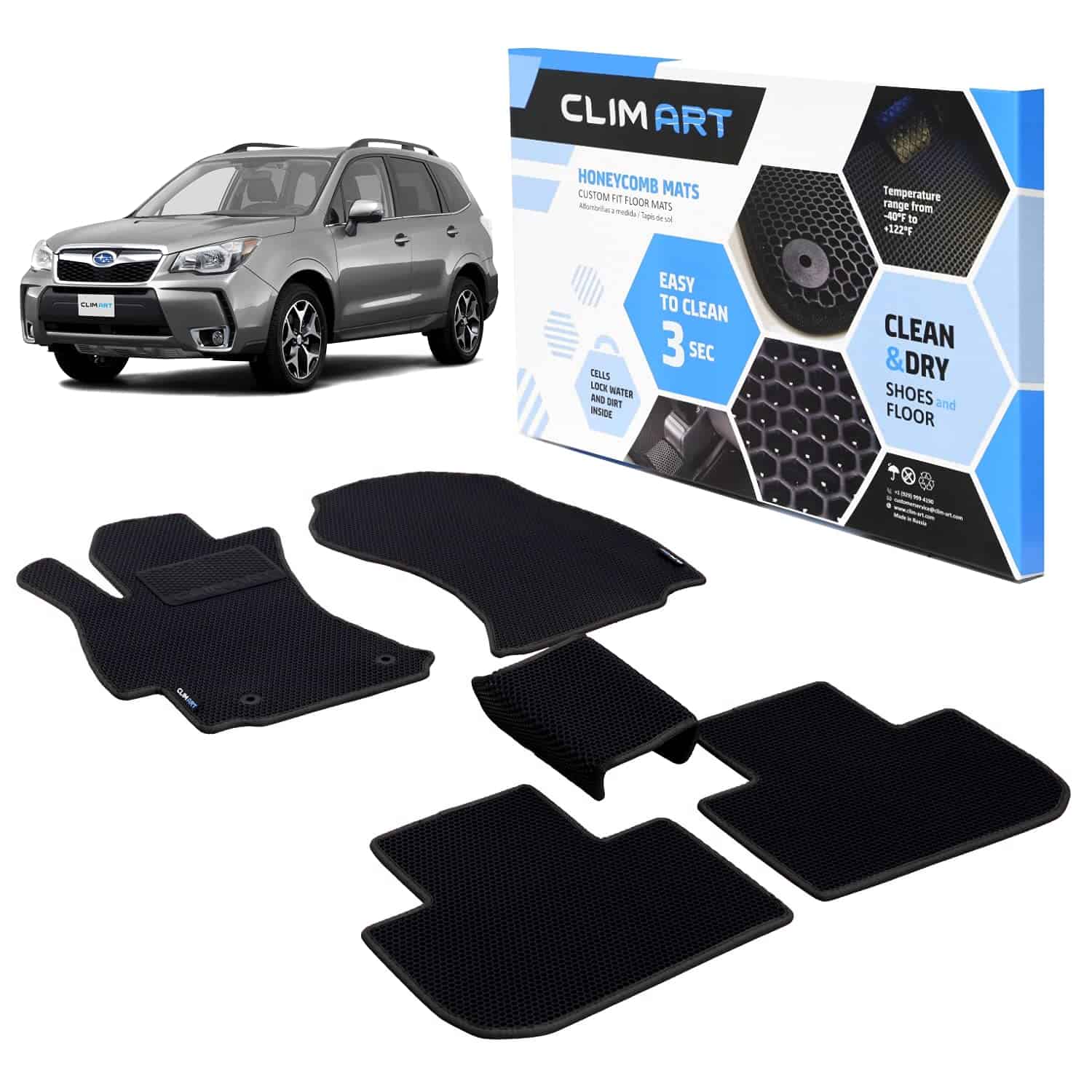 1. Tapetes para piso a medida de precisión Utilizando la tecnología avanzada de panal de abeja, estos tapetes para piso de automóvil Clim Art están diseñados específicamente en torno al plano del piso de tu SUV para garantizar cobertura de borde a borde y una protección superior. Estos tapetes para piso se ajustan a Subaru Forester 2014-2018.