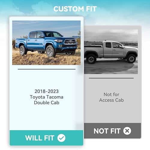 1. SOLO COMPATIBLE CON – Solo para Toyota Tacoma 2016 2017 2018 2019 2020 2021 2022 2023 Cabina Doble y Automática Antes de realizar un pedido, Por favor, revise cuidadosamente su modelo de vehículo.