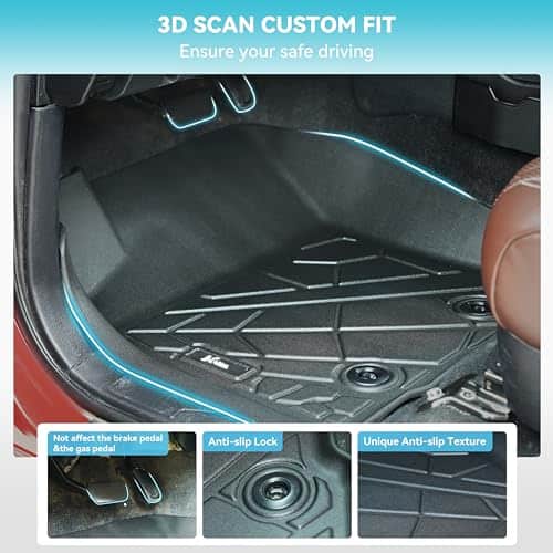 2. AJUSTE COMO UN GUANTE – Todos los tapetes para piso para Toyota Tacoma Cabina Doble / Automática son escaneados en 3D con láser usando nuestro proceso de diseño a medida exclusivo. Aseguran una mejor cobertura que los tapetes de fábrica OEM.