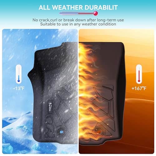 3. PROTECCIÓN TODO TIEMPO – Años de experiencia en fábricas OEM nos han llevado a ofrecerte forros de piso, que pueden resistir la prueba del ácido de batería, aceite de motor y condiciones desde bajo cero hasta calor extremo. No produce olores desagradables incluso a altas temperaturas.