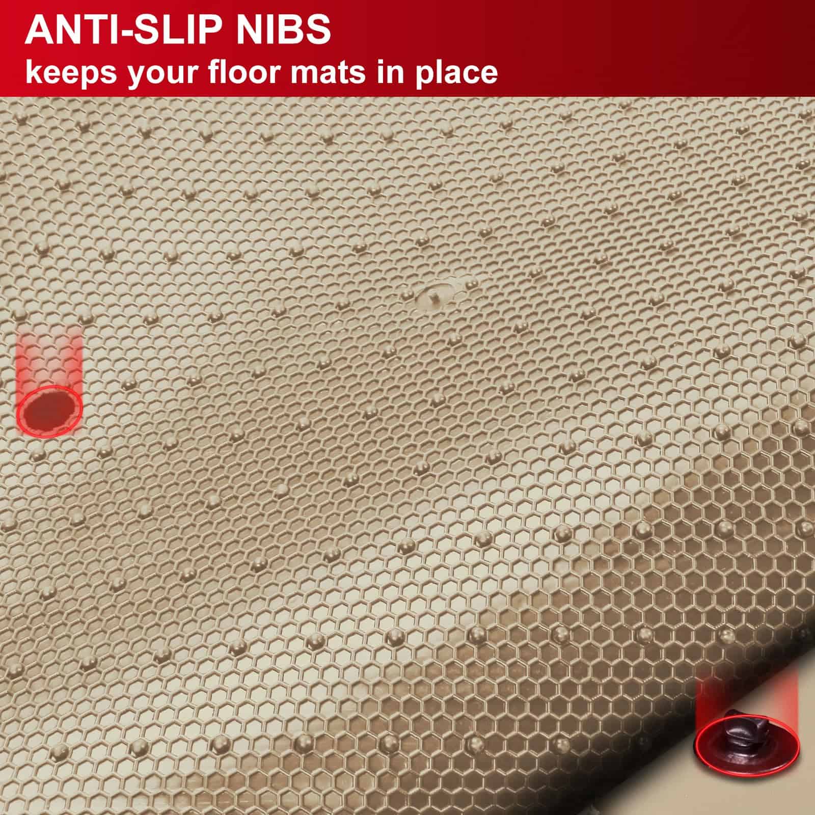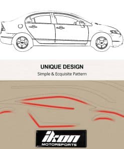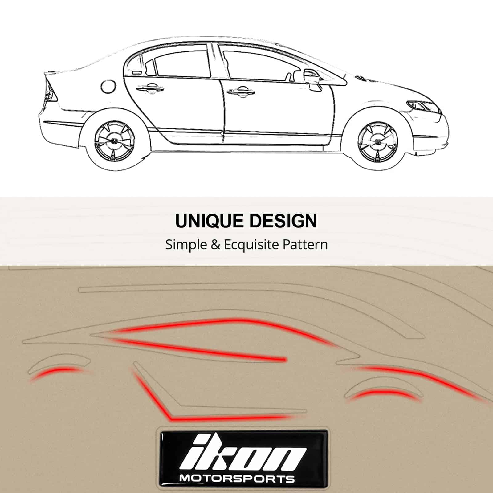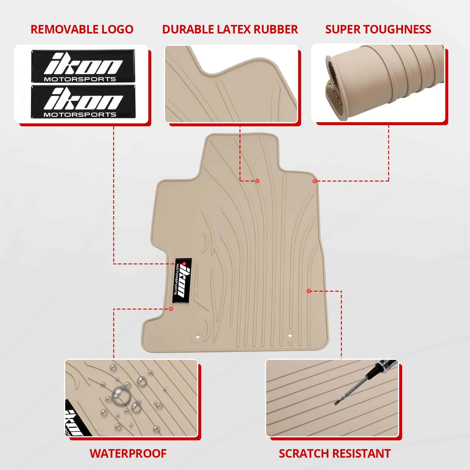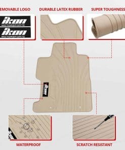 Tapetes para piso compatibles con Honda Civic Coupe y Sedán 2006-2011. Fabricados en caucho de látex de alta calidad en color beige con estilo IKON. El paquete incluye un juego completo de 3 piezas. Se recomienda una instalación profesional. Garantía limitada de 30 días.