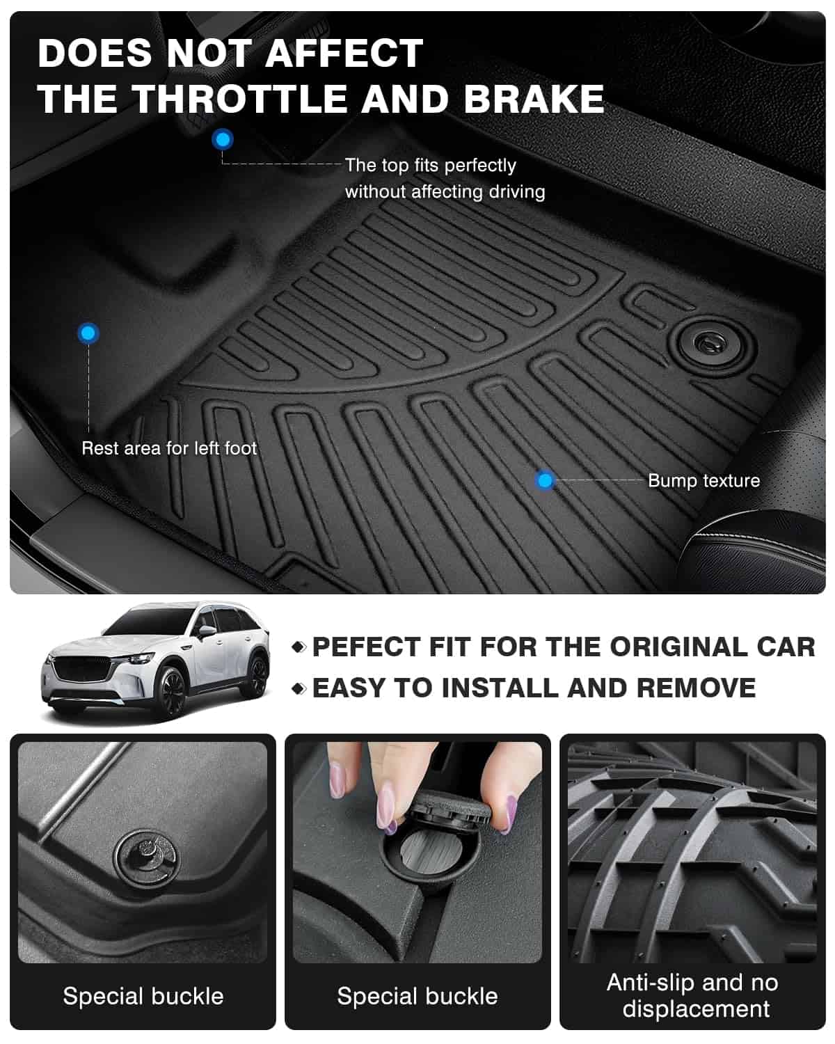 4. Protección contra todo clima contra nieve, lodo, arena, agua salada y más. – Labio a prueba de derrames (evita que los derrames alcancen la alfombra).