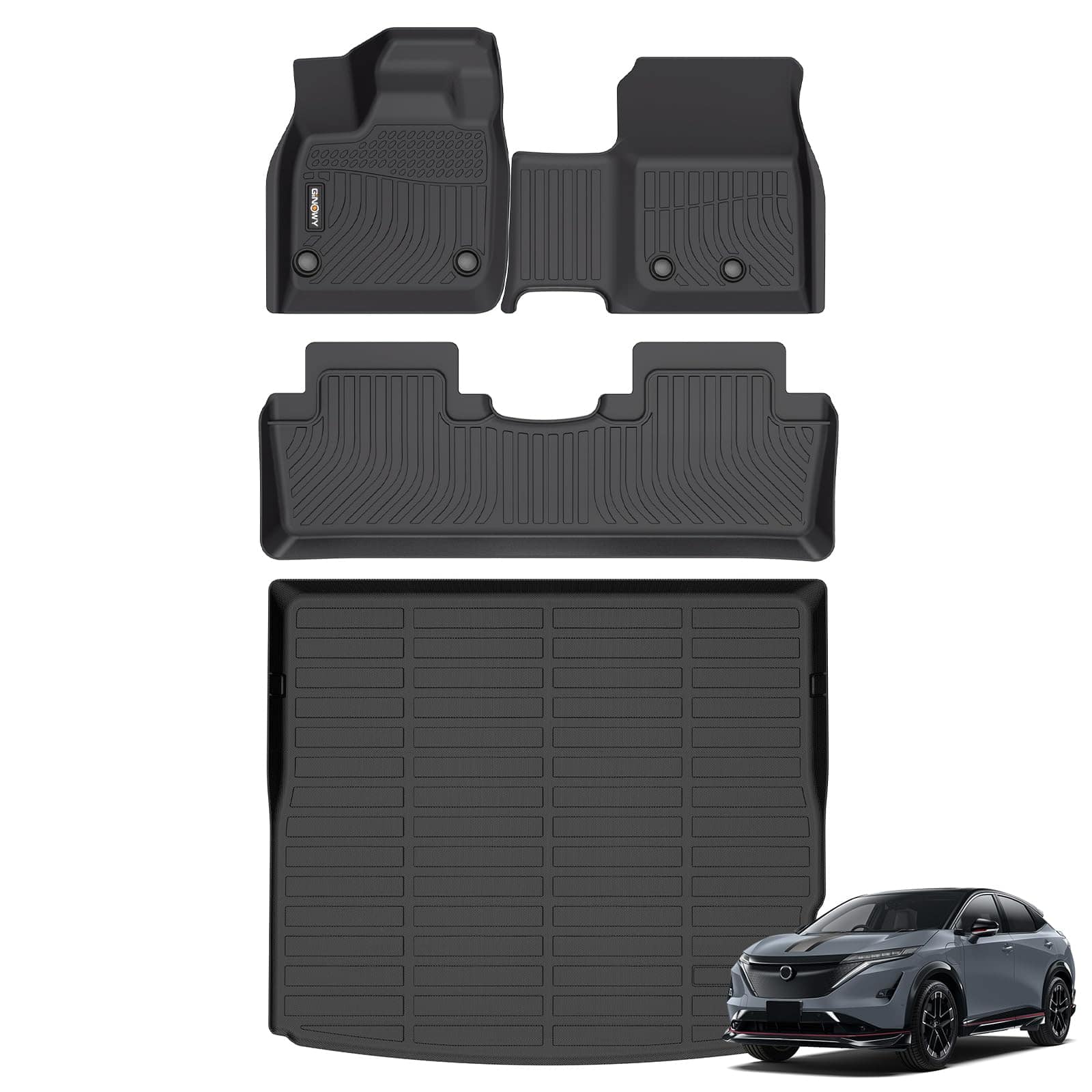 Tapetes para piso con forro de carga diseñados específicamente para adaptarse a los modelos Nissan Ariya 2025, 2024 y 2023. Este conjunto de tapetes para piso y tapete de tronco de carga de goma TPE está hecho para proteger el interior de su vehículo sin importar las condiciones climáticas. Fabricados con material duradero y resistente, estos tapetes ofrecen una cobertura completa de borde a borde para garantizar que la alfombra original del automóvil esté protegida contra la humedad, la suciedad y derrames accidentales. La instalación es rápida y sencilla, y el proceso de limpieza es aún más fácil: simplemente retire los tapetes, límpielos con agua y déjelos secar al sol. Con un ajuste personalizado y una construcción robusta, estos tapetes para piso y tapete de tronco de carga serán su mayor aliado tanto en invierno como en verano. ¡No espere más para proteger su vehículo con este conjunto de accesorios esenciales para su Nissan Ariya!