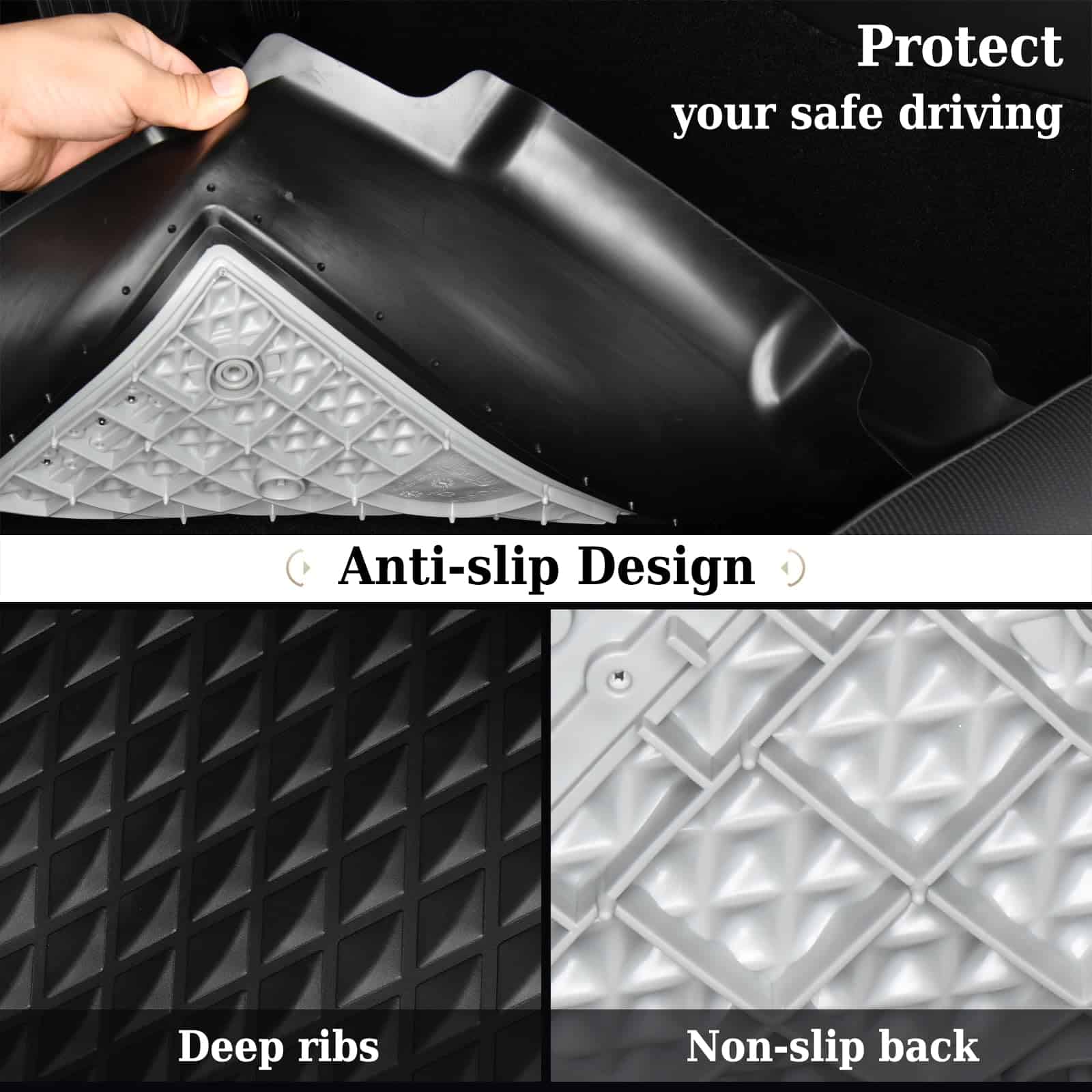5. Antideslizante y absorción de impactos – Los tapetes para auto pueden proporcionar buena fricción, aislar el ruido y las vibraciones de la carretera, evitar que el conductor se resbale y cometa errores al pisar el acelerador, el freno o el embrague, mejorar la seguridad al conducir. El juego de tapetes para piso Tesla Model 3 2024 incluye: tapete para la 1ra y 2da fila, 1x tapete para maletero delantero, 1x tapete para carga, 1x tapete para almacenamiento del maletero trasero
