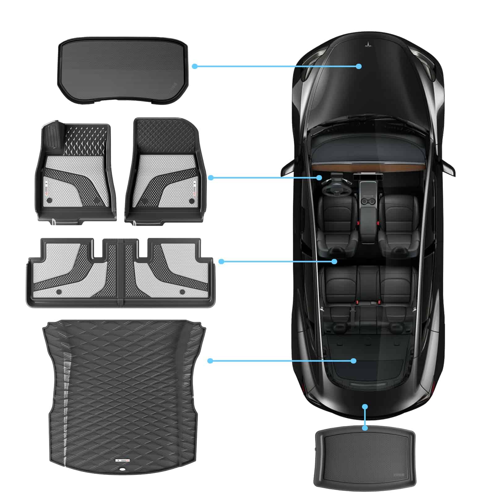 Tapetes para piso Coverado Tesla Model 3, Juego completo,