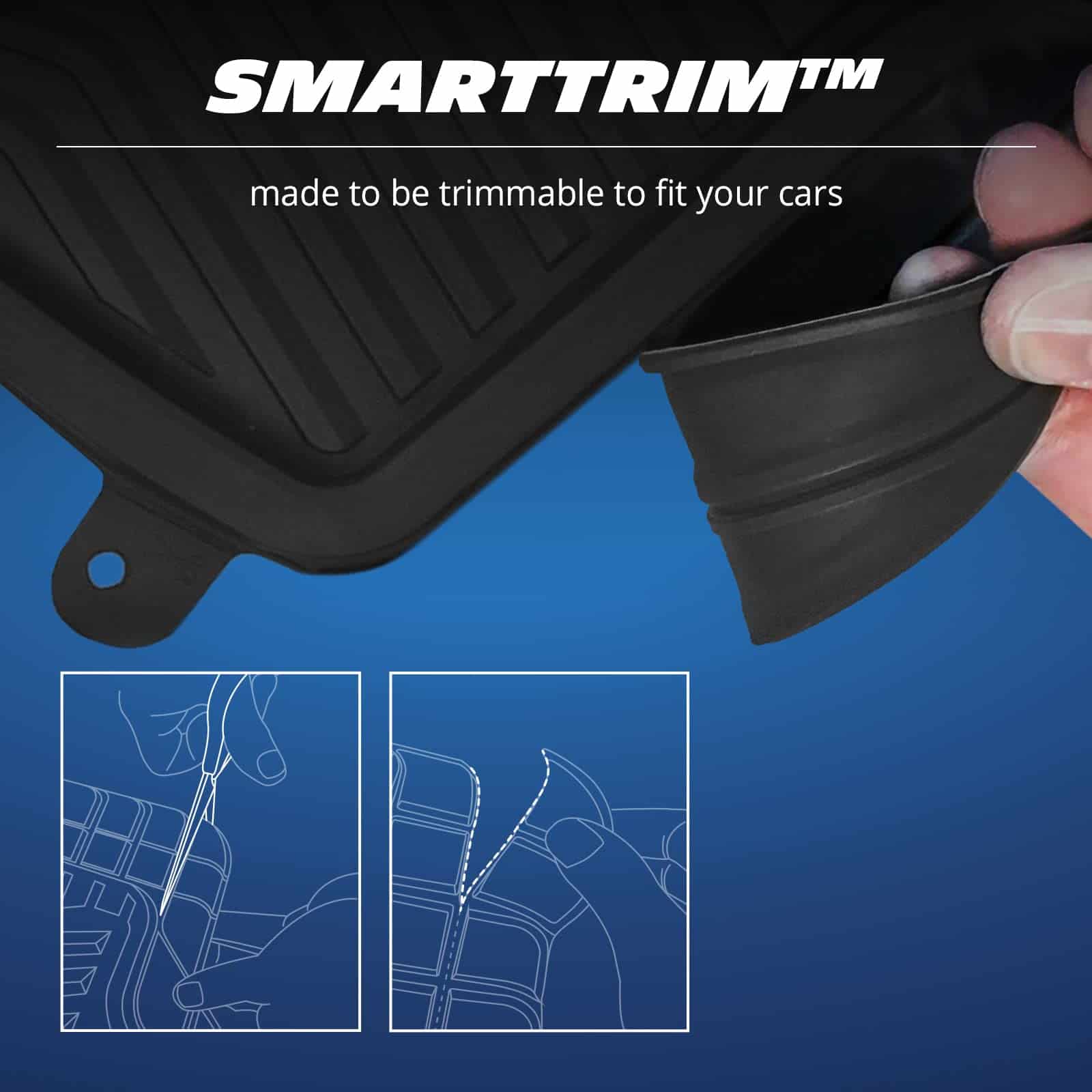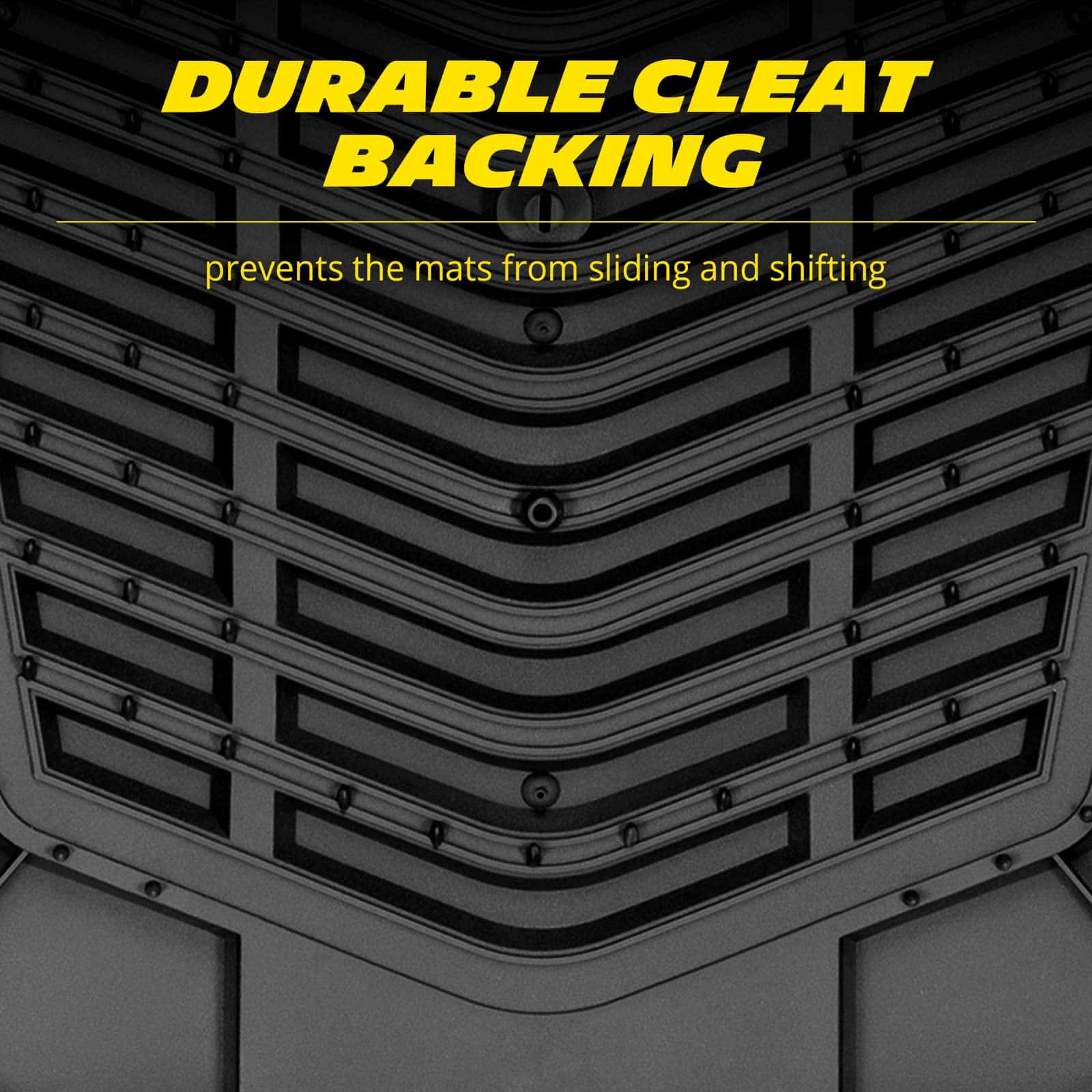 El tapete para piso todo clima de protección pesada ofrece una protección resistente para el interior de tu vehículo contra la suciedad, líquidos y escombros. Las líneas de ajuste semi personalizado se pueden cortar con tijeras comunes para lograr una cobertura del 70% del piso para muchos de los vehículos más populares en la actualidad. Fácil de limpiar con aspiradora y detergente suave.