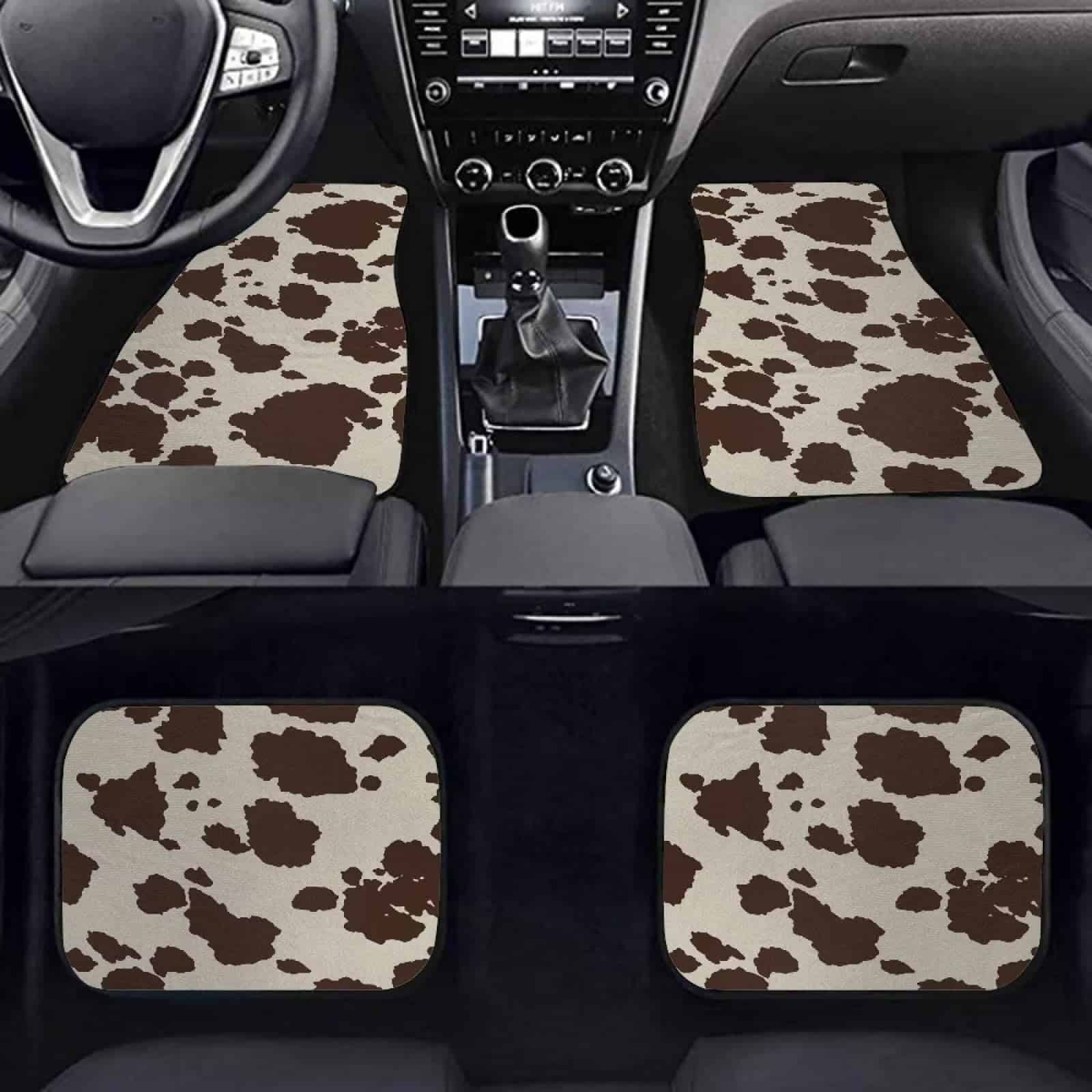 Tapetes para Piso de Automovil con Estampado de Vaca Marrón