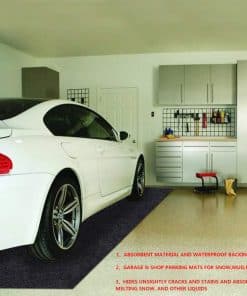 Usos Versátiles: Cuando necesitas reparar o arreglar un auto, el tapete para piso de garaje puede ser una excelente elección. El tapete para piso de garaje se puede adherir al piso debajo de un auto, ya sea en un campo exterior, en casa o en cualquier otro estacionamiento. Excelente Protección: El tapete para piso de garaje está hecho de tela de fieltro que puede absorber agua, aceite u otro líquido. La tela en la parte superior del tapete puede prevenir que el piso se ensucie, se manche o se llene de lodo, y la membrana en la parte posterior del tapete puede prevenir que el agua, el aceite, la nieve u otro líquido se filtre a través de la parte posterior del tapete. Fácil de usar: El tapete para piso de garaje está construido con una membrana impermeable en la parte posterior que permite adherirse al piso fácilmente y mantenerse en su lugar. Cuando se necesita guardar el tapete, simplemente retírelo del piso y enróllelo. El tapete para piso es lavable y se puede limpiar fácilmente con mangueras o limpiadores similares. Durabilidad: El tapete para piso de garaje está hecho de tela de fieltro de alta calidad con una estructura compacta. La tela de estructura compacta está cubierta con una membrana impermeable, tal diseño garantiza características resistentes a desgarros y al desgaste. Alta Adaptabilidad: 252 pulgadas x 91 pulgadas es lo suficientemente grande para adaptarse a la mayoría de estacionamientos de autos.