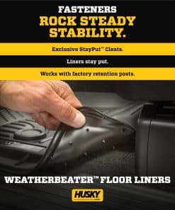 Husky Weatherbeater combina un ajuste preciso con una durabilidad legendaria. La construcción original del liner todo clima forma una zona antideslizante con cero rizo en los bordes, mientras que sus clavos StayPut lo mantienen firmemente anclado bajo los pies. El material indestructible de Husky se mantiene firme ante productos químicos como gasolina, aceite y ácido de batería, y se mantiene resistente y flexible en condiciones desde temperaturas bajo cero hasta abrasadoras. Su diseño FormFit escaneado con láser le brinda a su camión, furgoneta o SUV un aspecto ultra limpio con una fácil limpieza para que coincida, simplemente sáquelo, enjuáguelo y siga adelante. El borde FormFit patentado de Husky crea una barrera elevada a lo largo de la jamba de la puerta que mantiene barro, nieve y derrames contenidos, y las alfombras sin manchas. Es una protección insuperable de Husky de por vida, garantizada de la misma manera. Disponible en negro, beige y gris. Orgullosamente fabricado en EE. UU.