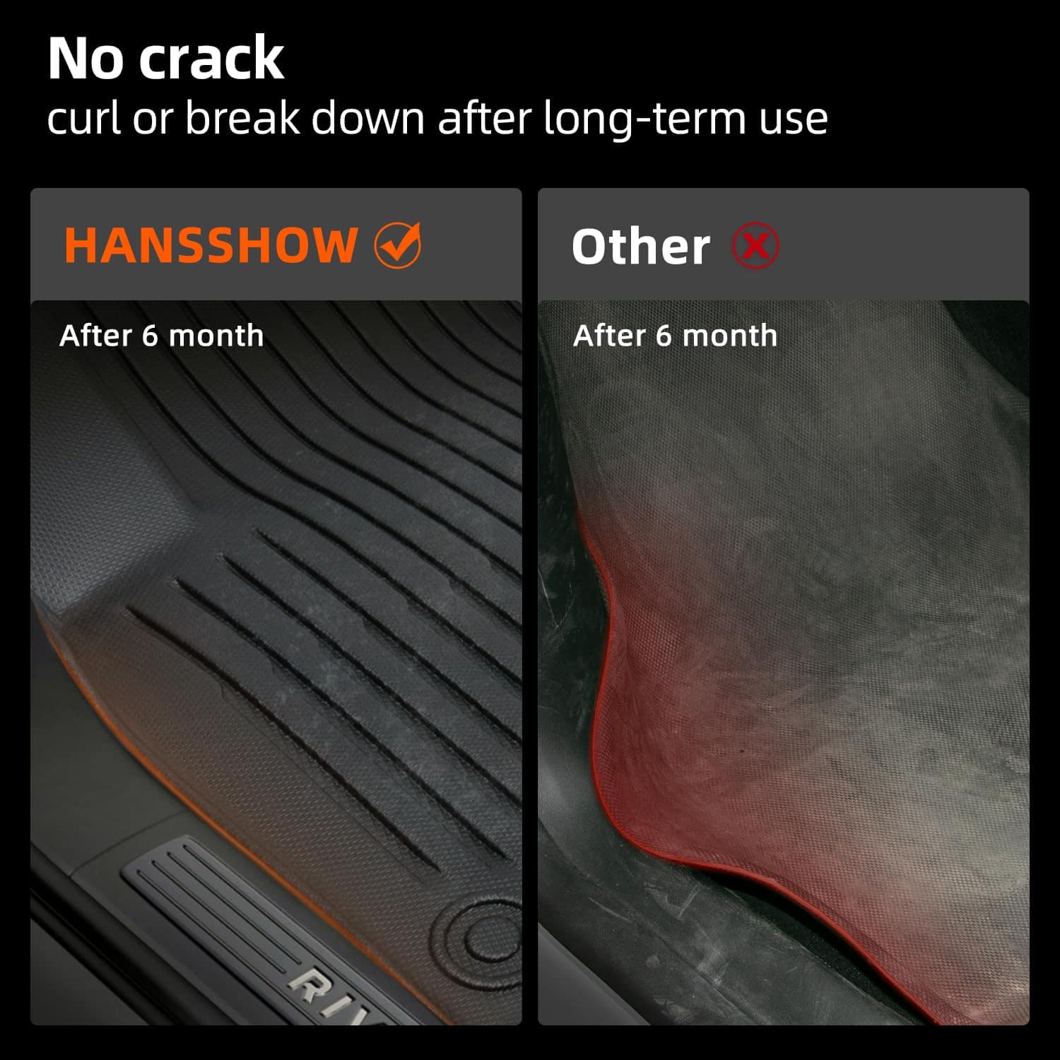 5. PAQUETE Y GARANTÍA – Tapete para piso de Rivian R1T; HANSSHOW ofrece 1 año de garantía de satisfacción 100% libre de riesgos. Si tiene alguna pregunta, contáctenos.