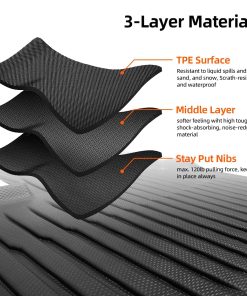 3. DISEÑO DE 3 CAPAS – El tapete para piso de Rivian R1T HANSSHOW es impermeable, antideslizante y absorbente de impactos. La capa exterior adopta material polímero impermeable para impermeable y transpirable. El material interno de espuma XPE reduce el ruido, absorbe el impacto. La capa antideslizante puede evitar que el tapete se deslice, diseñado para su conducción segura y caminar.