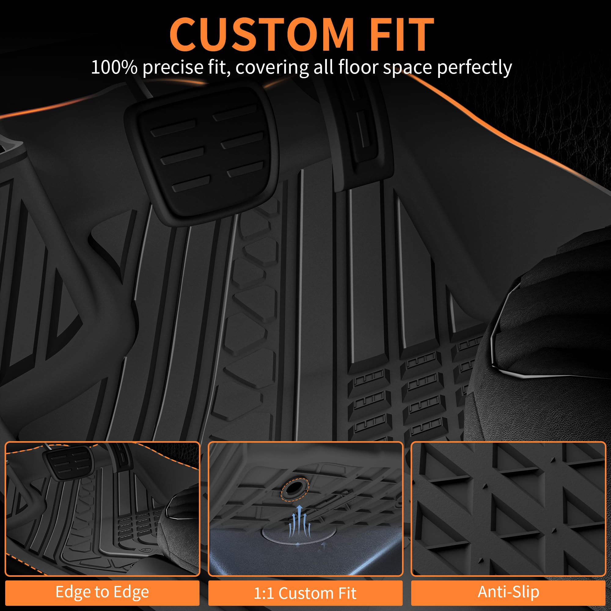 1. Ajuste personalizado – Los tapetes para piso están diseñados para Toyota Tacoma 2018-2023. Cubren todas las áreas del piso y se ajustan de borde a borde, lo cual no afectará la función del acelerador y freno, y hará que tu conducción sea más segura y sin preocupaciones.