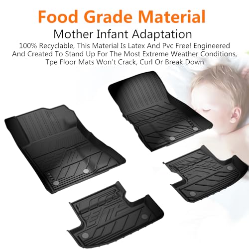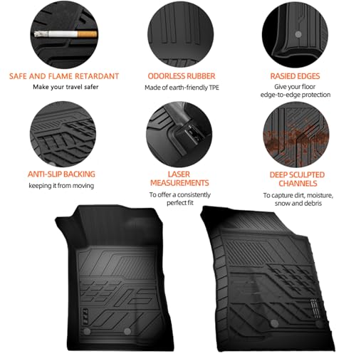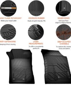 KEYOOG tapetes para automóvil específicos, fabricados con materiales nuevos resistentes a los impactos termoplásticos (TPE) ecológicos, tienen características como no deformables, sin olor, cero formaldehído, fácil limpieza, etc., lo que puede mantener su automóvil limpio y ordenado. Los bordes elevados pueden bloquear eficazmente líquidos, nieve, arena, etc., protegiendo completamente el interior del automóvil; resistencia a la temperatura de -65 a 135 , solo sáquelos del automóvil y lávelos. Solo se necesitan 3 segundos para mantener limpio y cómodo el piso de su automóvil en cualquier temporada, y resolver completamente los problemas de limpieza o deformación en verano o invierno. El diseño ergonómico antideslizante proporciona un excelente agarre resistente y duradero, y la parte trasera de los tapetes para piso está equipada con clavos antideslizantes que cubren completamente, lo que puede prevenir los pies incluso en condiciones húmedas sin hebilla. Brindamos un soporte sincero de servicio posventa: Les decimos sinceramente a los clientes que confían en nosotros. No se preocupe por ninguna pregunta sobre el producto, puede contactarnos en cualquier momento y obtendrá una respuesta en un plazo de 24 horas. Antes de realizar el pedido, verifique el modelo de su automóvil. No confíe solo en el año de fabricación y en el modelo, consulte la pestaña de compatibilidad que incluye las notas o envíenos un mensaje para asegurarse de que coincida exactamente.