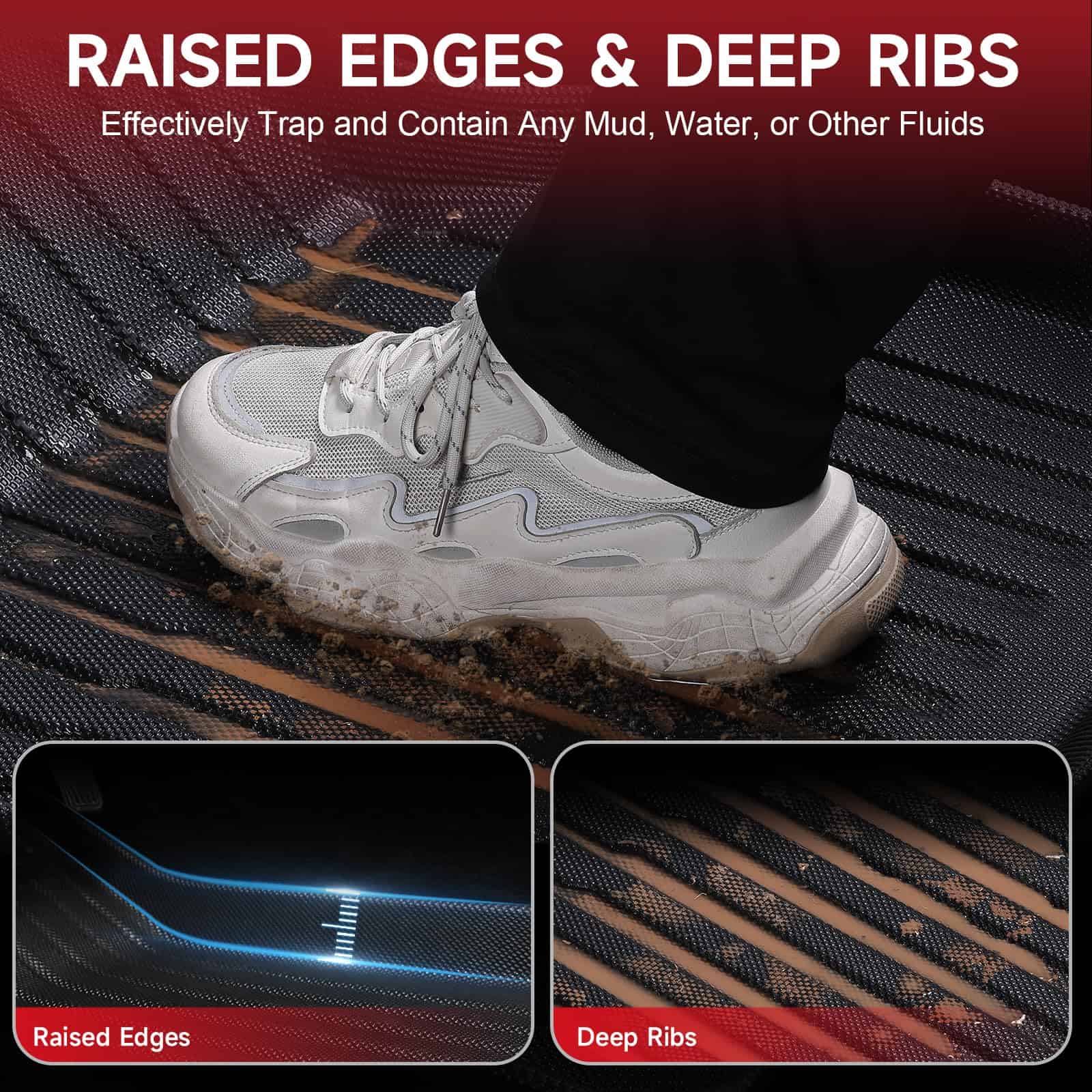 3. Tapetes a prueba de agua y polvo para todo clima Estos tapetes para el Model Y brindan protección completa contra la suciedad, barro, sal, lluvia, nieve y arena. Son especialmente adecuados para el desplazamiento diario, viajes de vacaciones, fiestas y mascotas. Los canales diseñados de forma única y los bordes elevados atrapan de manera efectiva líquidos, nieve y arena, manteniendo limpio tu coche y tus zapatos. La superficie texturizada y antideslizante proporciona una tracción superior para evitar resbalones o deslizamientos, manteniendo los tapetes de piso de tu automóvil seguros en su lugar.