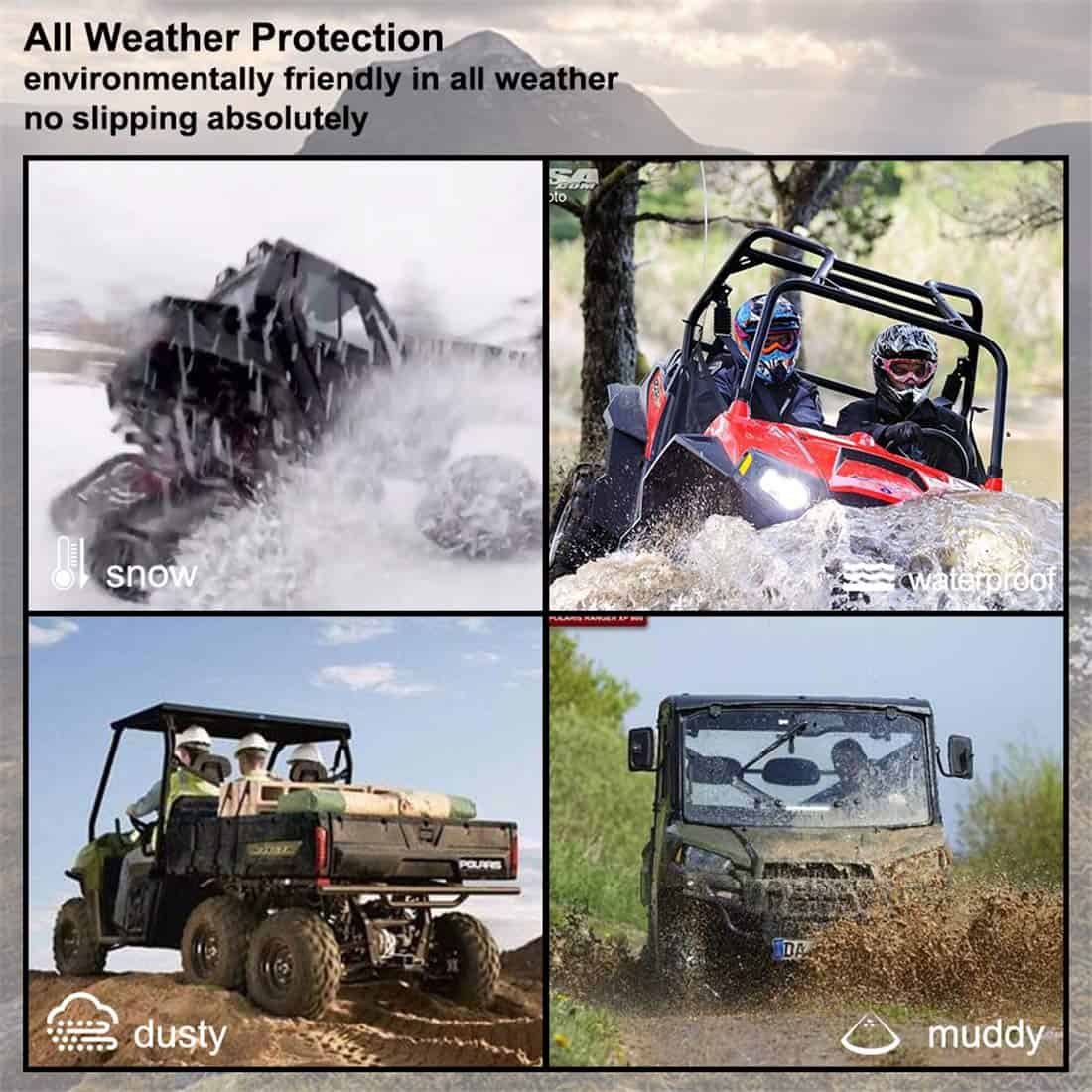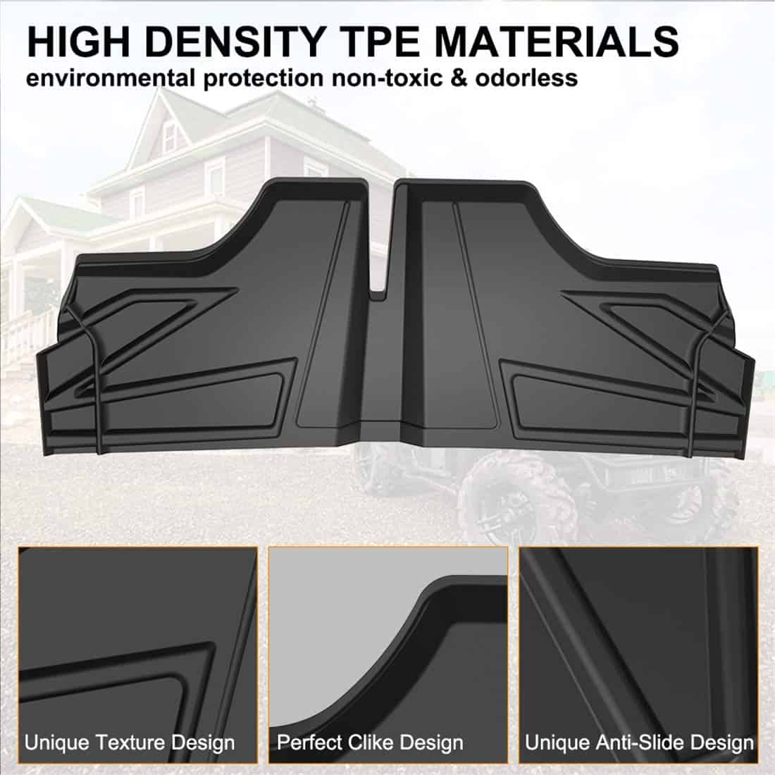 Los tapetes para piso de Kiwi Master para Polaris Ranger 400 570 800 tamaño medio protegen los pisos del conductor y del pasajero del vehículo. Hechos de material TPE, estos tapetes resistirán los elementos severos, previniendo manchas y humedad en las alfombras de fábrica originales. Limpia fácilmente los tapetes con jabón y agua caliente o fría y un cepillo suave, no se necesita frotar con fuerza ni limpiadores especiales, la base especial de clavija antideslizante evitará cualquier deslizamiento o movimiento al contacto. Mantén tu enfoque en tu conducción, y no en ajustar los tapetes de tu automóvil, mantiene el piso de tu auto en condiciones prístinas, fácilmente, de la marca de confianza en accessorios automovilísticos.