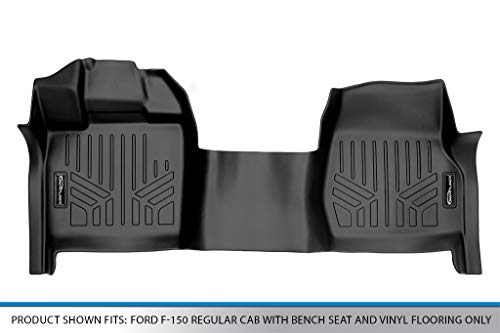 Solo se ajusta a la cabina regular (solo 2 puertas) con asiento de banca en la fila delantera y suelo de vinilo. Protección de alfombra para vehículos con un material moldeado de baja densidad que brinda cobertura en el piso. Estos tapetes ofrecen protección resistente a las manchas de todos los elementos, incluyendo nieve, barro, arena y agua salada. El borde levantado y el diseño personalizado construido utilizando tecnología innovadora de escaneo de vehículos garantiza el ajuste perfecto para proteger la alfombra de su vehículo del clima, derrames y cualquier desorden. Fáciles de limpiar con una manguera o limpieza local con un paño húmedo usando jabón y agua. Mejore la apariencia general del interior de su automóvil con nuestro diseño texturizado, resistente al deslizamiento y elegante. Nuestra protección sin olores al 100% está hecha con una mezcla de plástico-goma y polietileno 100% reciclable.