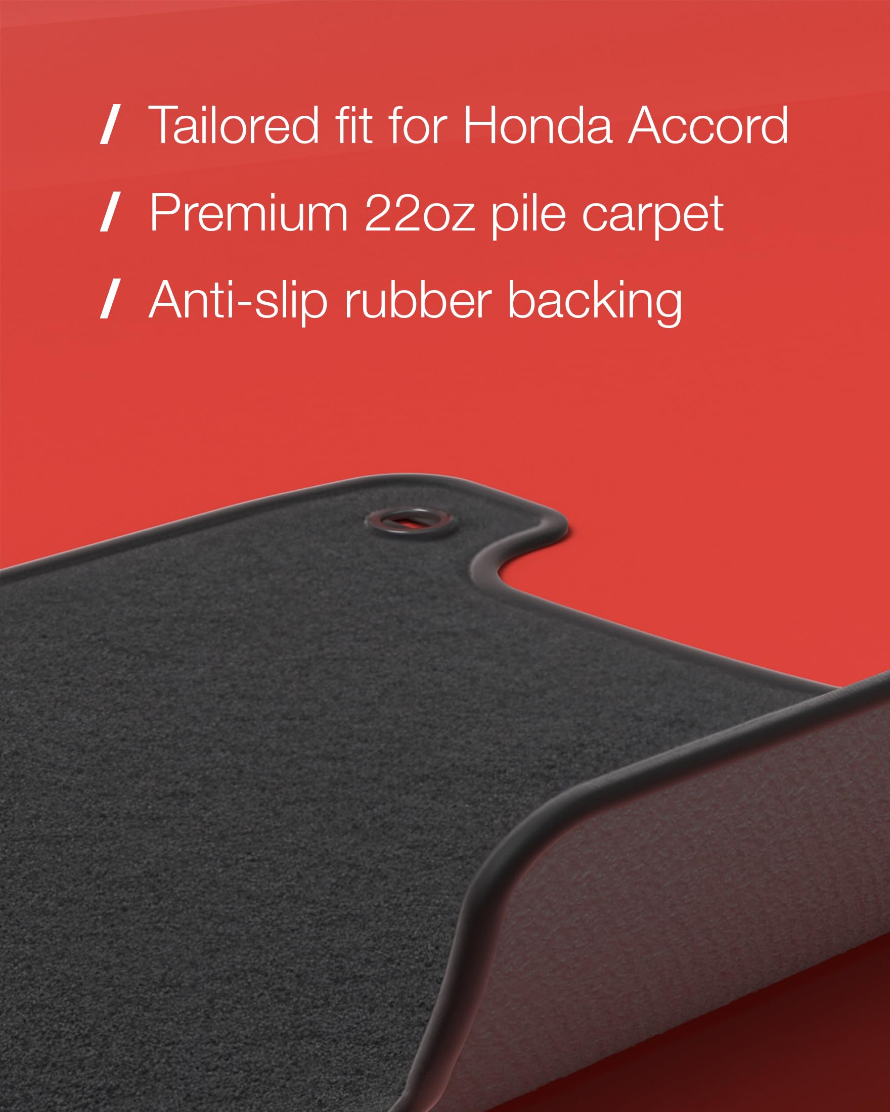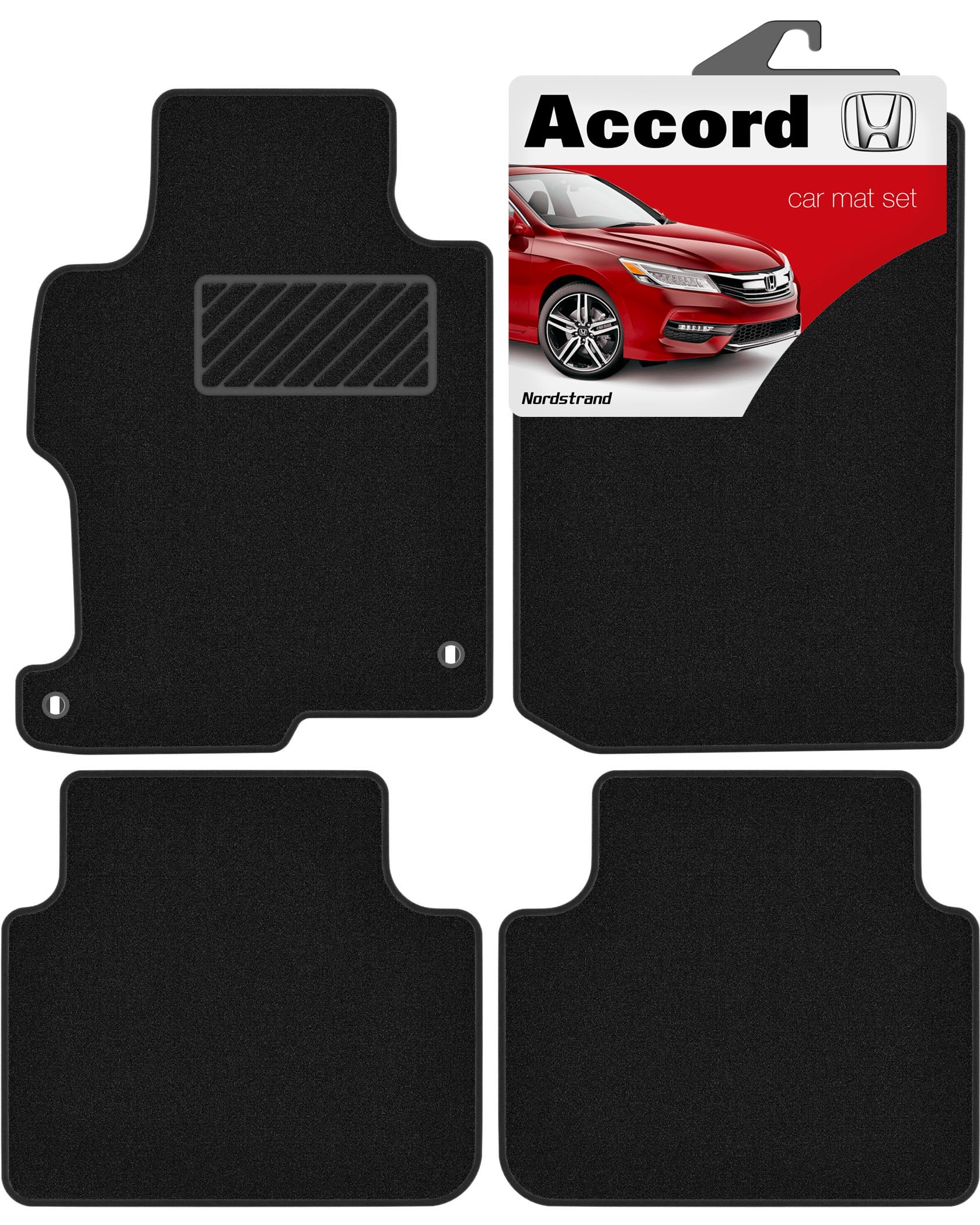 Con estos tapetes para piso Nordstrand, tu Honda Accord del 2013 al 2017 lucirá impecable. Este juego de 4 tapetes negros (2 delanteros, 2 traseros) están diseñados a medida para encajar perfectamente en los modelos de sedán Honda Accord de la Novena generación. Hechos a mano con alfombra duradera de 22 oz y con protección en los bordes para asegurar una larga durabilidad. La base de goma antideslizante evita movimientos no deseados y reduce el ruido en carretera. Además, estos tapetes para auto brindan protección contra todo tipo de clima y son fáciles de limpiar. Los clips de fijación incluidos facilitan la instalación para que puedas disfrutar de tus nuevos tapetes sin demora.