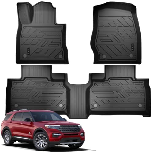 TAPETES PARA COCHE KEYOOG: Incluye 2 tapetes delanteros y 1 tapete trasero. Totalmente adecuado para Fo-rd Explorer 2020-2024 Asientos de la 2nda Fila. El uso de tecnología de escaneo láser 3D, moldeo por inyección integrado, para garantizar que los tapetes para piso estén cubiertos y protegidos de manera precisa, sin necesidad de cortar o recortar, y conducir de manera más segura.