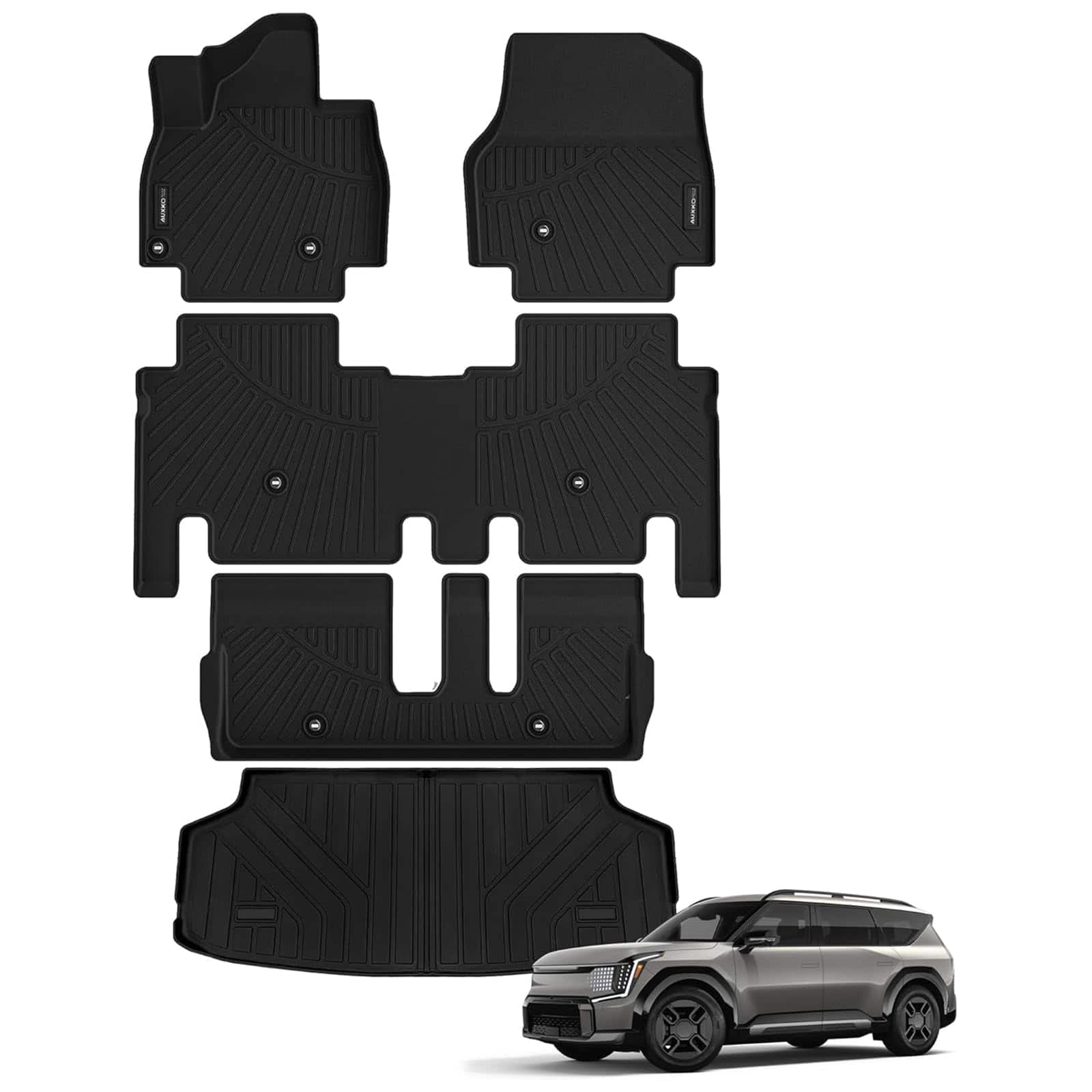 2. MATERIAL MÁS APROPIADO: Los tapetes para accesorios Kia EV9 7 Asientos 2024 2025 de Auxko están construidos con TPE (elastómero termoplástico), Libre de látex y PVC, 100% reciclable, Sin olor. Los tapetes Auxko para Kia EV9 7 Asientos 2024 2025 son suaves y duraderos. Más importante aún, resistirán en condiciones climáticas extremas, por lo que no tiene que preocuparse por grietas, enrollamientos o que los tapetes se rompan.