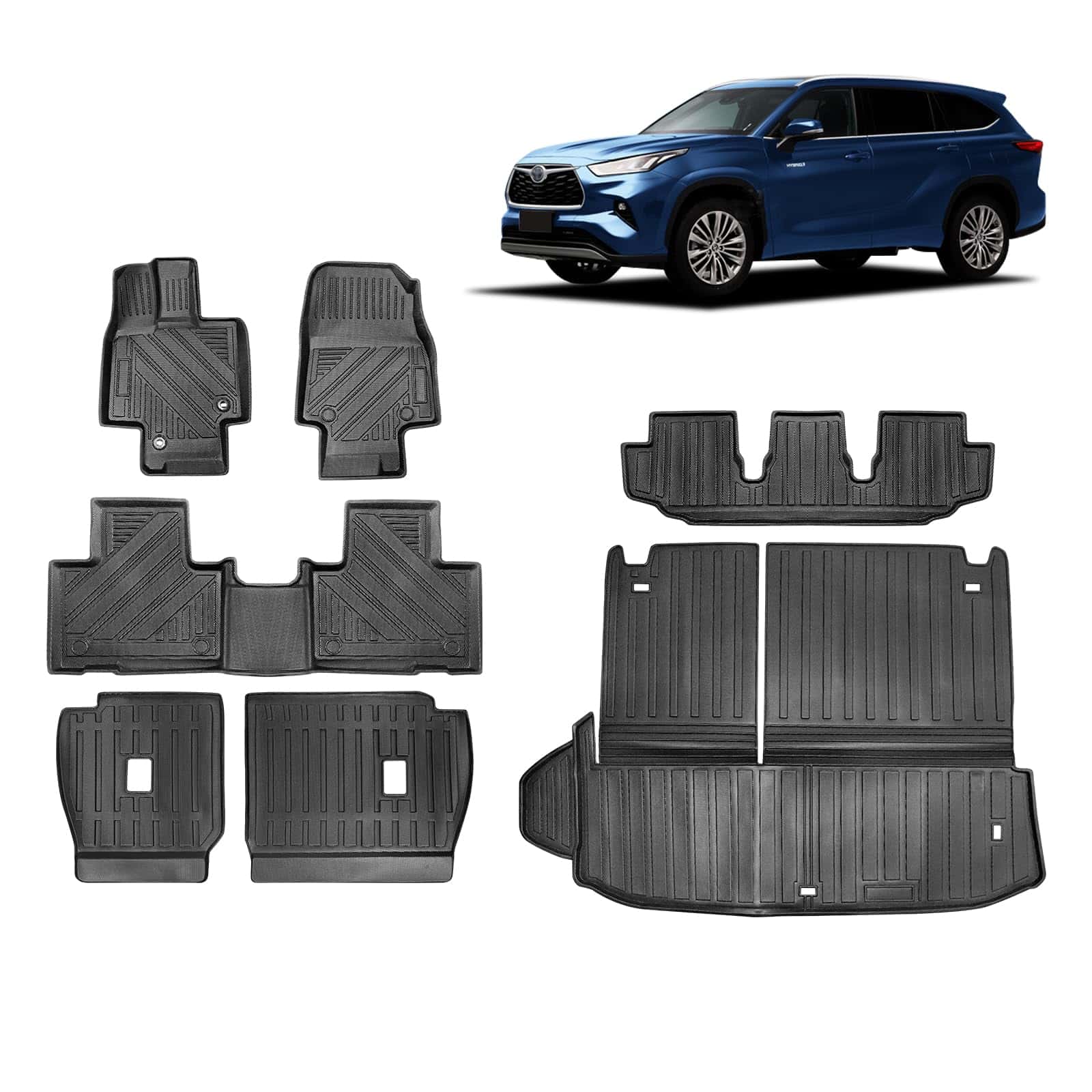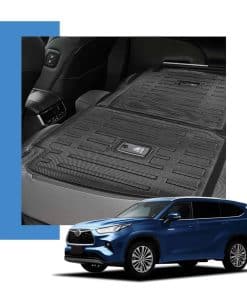 1. ACCESORIOS PERSONALIZADOS: incluye tapetes para piso delanteros (tapetes para conductor y pasajero), tapetes para piso traseros, tapetes para respaldo y tapetes para maletero en un conjunto de 7 piezas. Estos tapetes han sido medidos y diseñados precisamente para adaptarse al Highlander 2021.