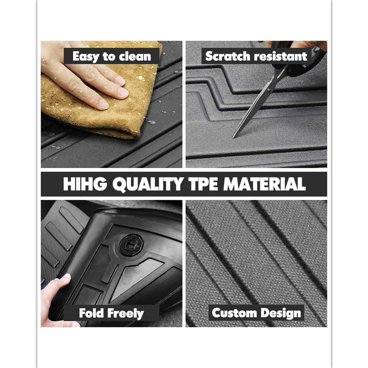 3. Protección para todo tipo de clima: Instale el tapete para piso, el tapete para respaldo y el forro para maletero para evitar arañazos y suciedad y ayudar a mantener el interior impecable. Úselo para proteger su automóvil cuando ponga mascotas o desorden en el maletero, o cuando pase por entornos difíciles.