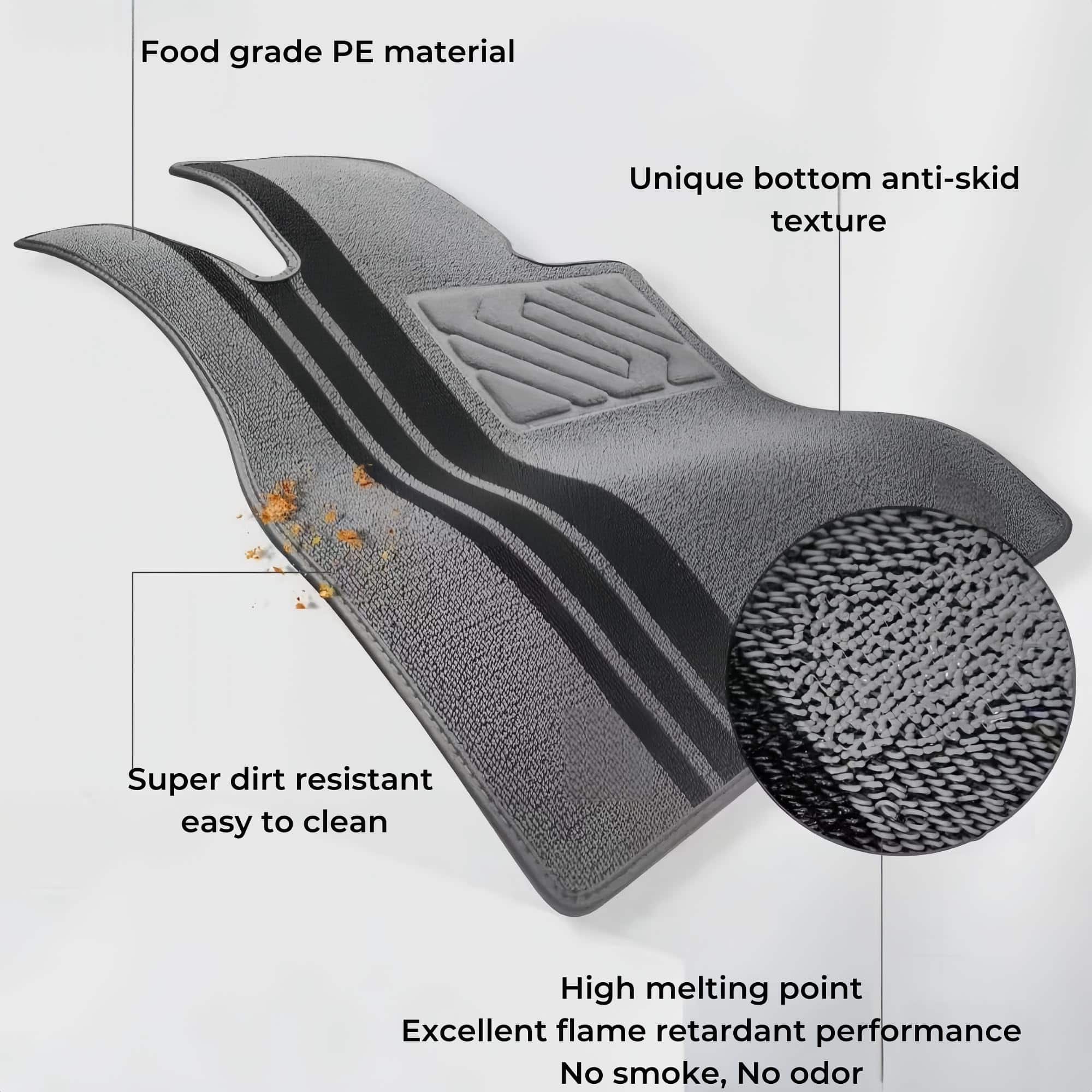 1. Material especial: La superficie de los tapetes para piso del modelo 3 de Tesla está hecha de hilo elástico con memoria única, y la superficie de TPE está tejida de manera densa con lazos uniformes y suaves. No se desprenden y pueden ser utilizados por un período más largo. El material es altamente resistente a la compresión y la capa inferior tiene función antideslizante, haciéndolo muy duradero. 2. Resistente a la suciedad: Es altamente resistente a la suciedad, gracias a su estructura única que asegura que el polvo, el barro, la nieve y las manchas caerán debajo de la superficie sin ser visiblemente aparentes. Esto elimina la molestia de lidiar con manchas y hace que el uso diario sea más libre de preocupaciones. Bajo uso normal, puede durar hasta un mes sin limpieza. 3. Ecológico: La alfombra tiene una capa inferior ecológica de TPR de alta densidad que es inodora y no tóxica. Tiene un alto punto de fusión y excelentes propiedades retardantes de llama, asegurando que no emita humo cuando se expone al fuego. 4. Varios colores: Los tapetes Nexrida vienen en colores brillantes y vibrantes, añadiendo un toque animado. Satisface las preferencias de individuos de diferentes grupos de edad y evita la monotonía. El borde está hecho de cuero sin solvente en el mismo color, dándole una apariencia más elegante. 5. Fácil de limpiar: Ya sea la suciedad diaria, las manchas de agua o los restos de comida, basta con darle un ligero sacudida para eliminar las manchas secas. Para manchas más pesadas, simplemente enjuague con agua, y el tapete puede ser utilizado inmediatamente sin necesidad de secado.