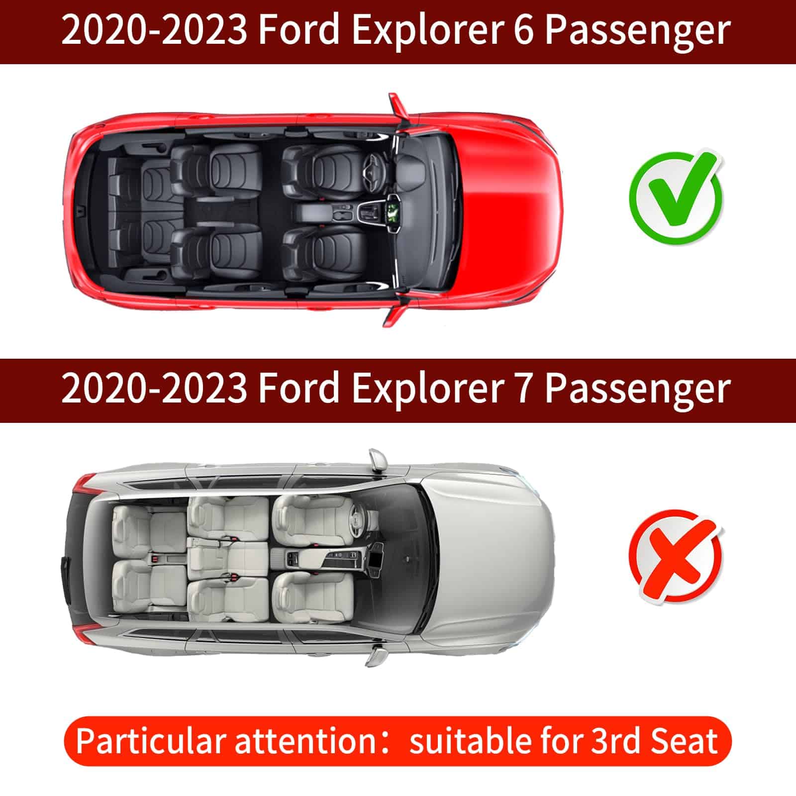 1. Compatibilidad: Los tapetes para piso son compatibles con Ford Explorer de 2020 a 2024 con capacidad para 6 pasajeros.
