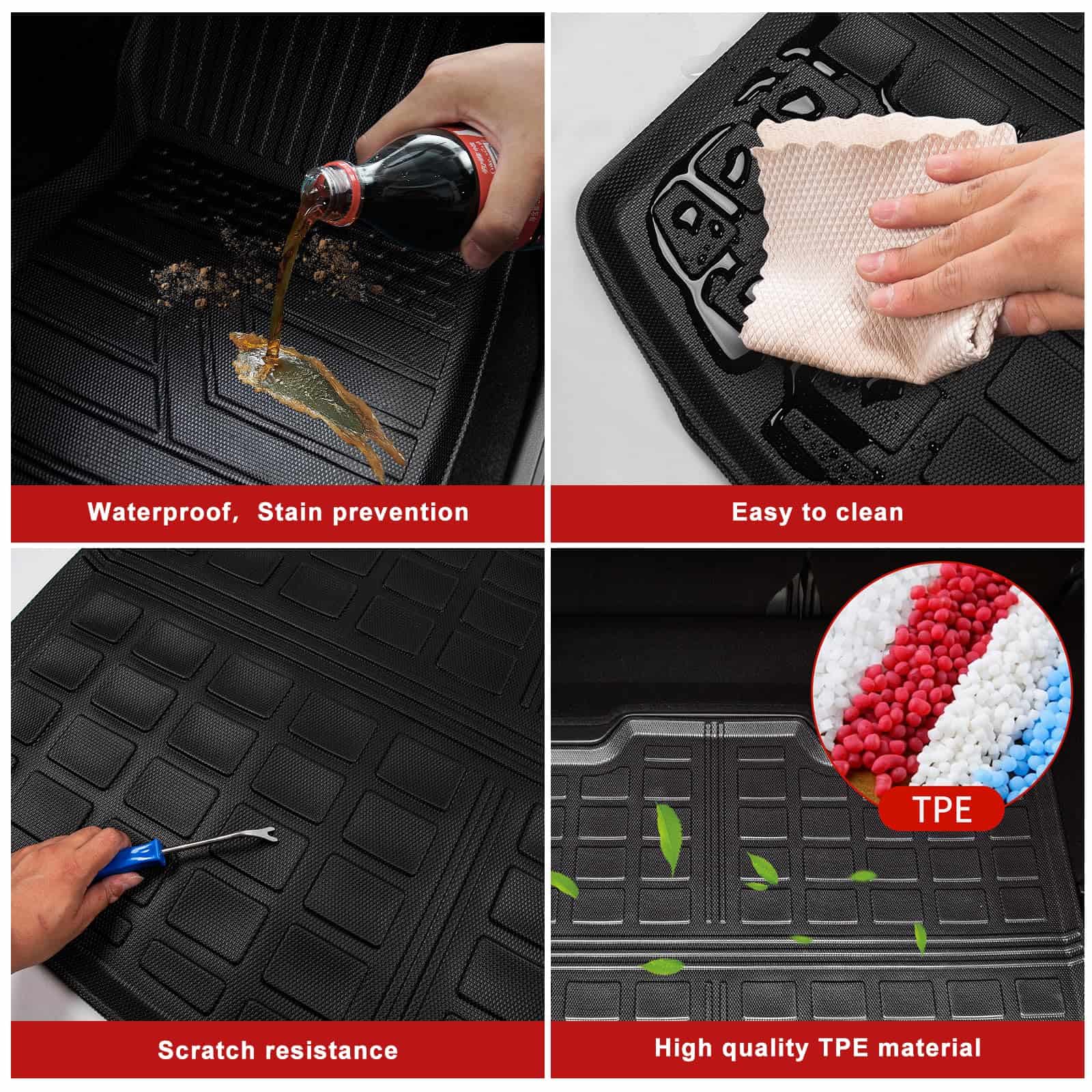 Tapetes para piso Thinzyou compatibles con Honda CRV 2023 2024 2025, que incluyen un tapete de carga para maletero y tapetes para piso de alta calidad. Diseñados siguiendo el diseño original del automóvil, estos tapetes se ajustan perfectamente a los modelos con Cubierta Inferior. Tenga en cuenta que no son compatibles con el modelo Híbrido ni con el CRV Touring, y no caben en maleteros con subwoofer. Asegúrese de verificar la compatibilidad con su vehículo antes de realizar la compra. El set incluye un total de 6 tapetes para automóvil, divididos en 3 tapetes de carga resistentes y 3 tapetes para los pies cómodos. Hechos de TPE de alta calidad, estos revestimientos son duraderos, resistentes y respetuosos con el medio ambiente. La instalación es rápida y sencilla, permitiendo ser colocado y retirado con facilidad. Los tapetes son impermeables, fáciles de limpiar y aptos para ser utilizados en todas las temporadas, garantizando una protección óptima para el interior de su vehículo.