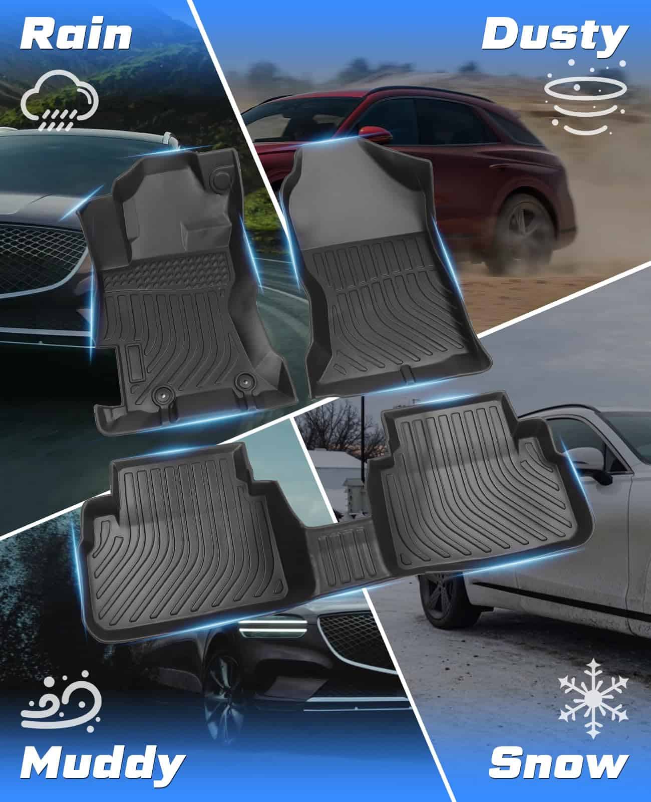 Estos tapetes todo clima funcionan bien en cualquier ambiente, ya sea extremadamente caliente o frío. Mantienen tu automóvil limpio y protegido contra raspaduras, barro, suciedad y mucho más. Además, añaden un toque de estilo al interior de tu vehículo.