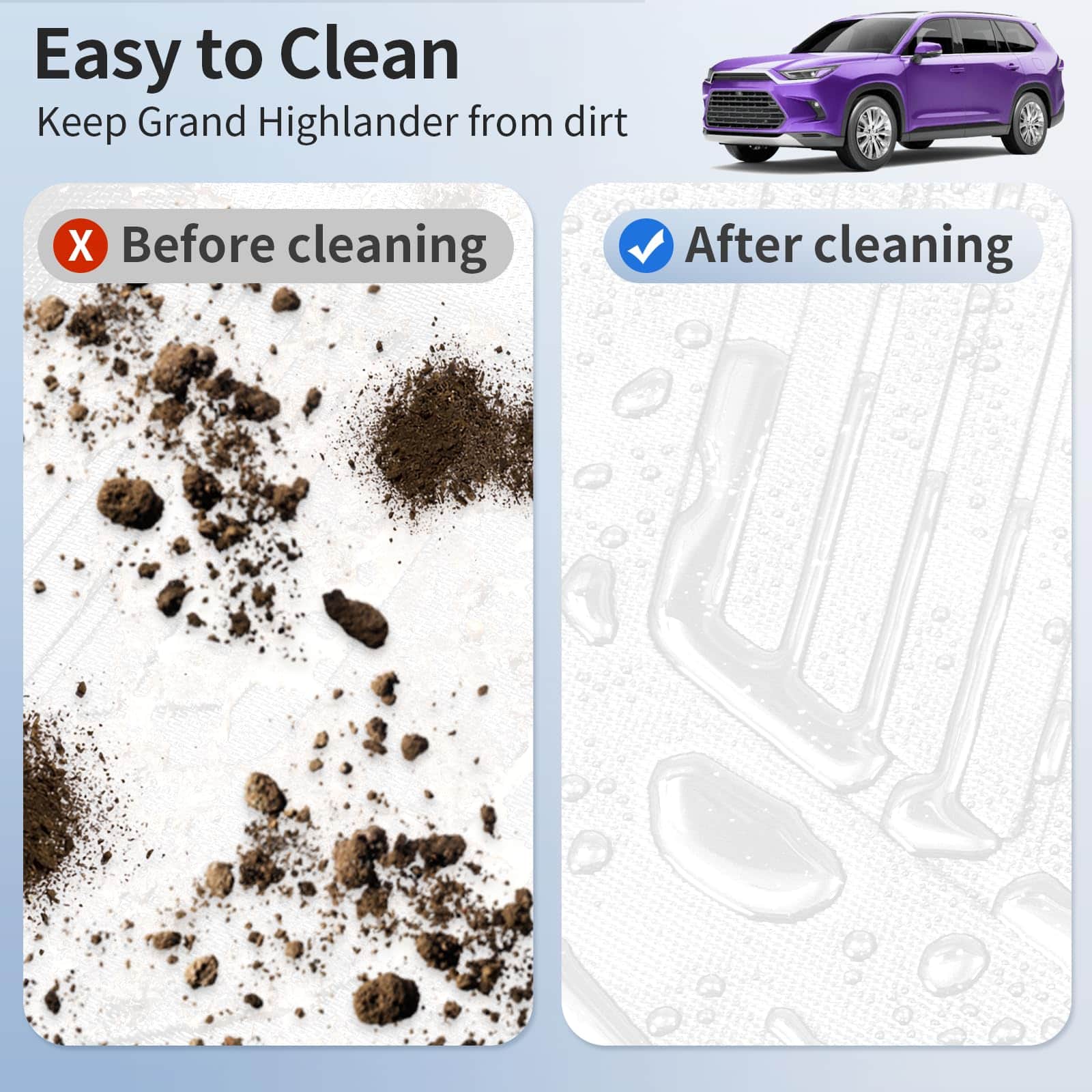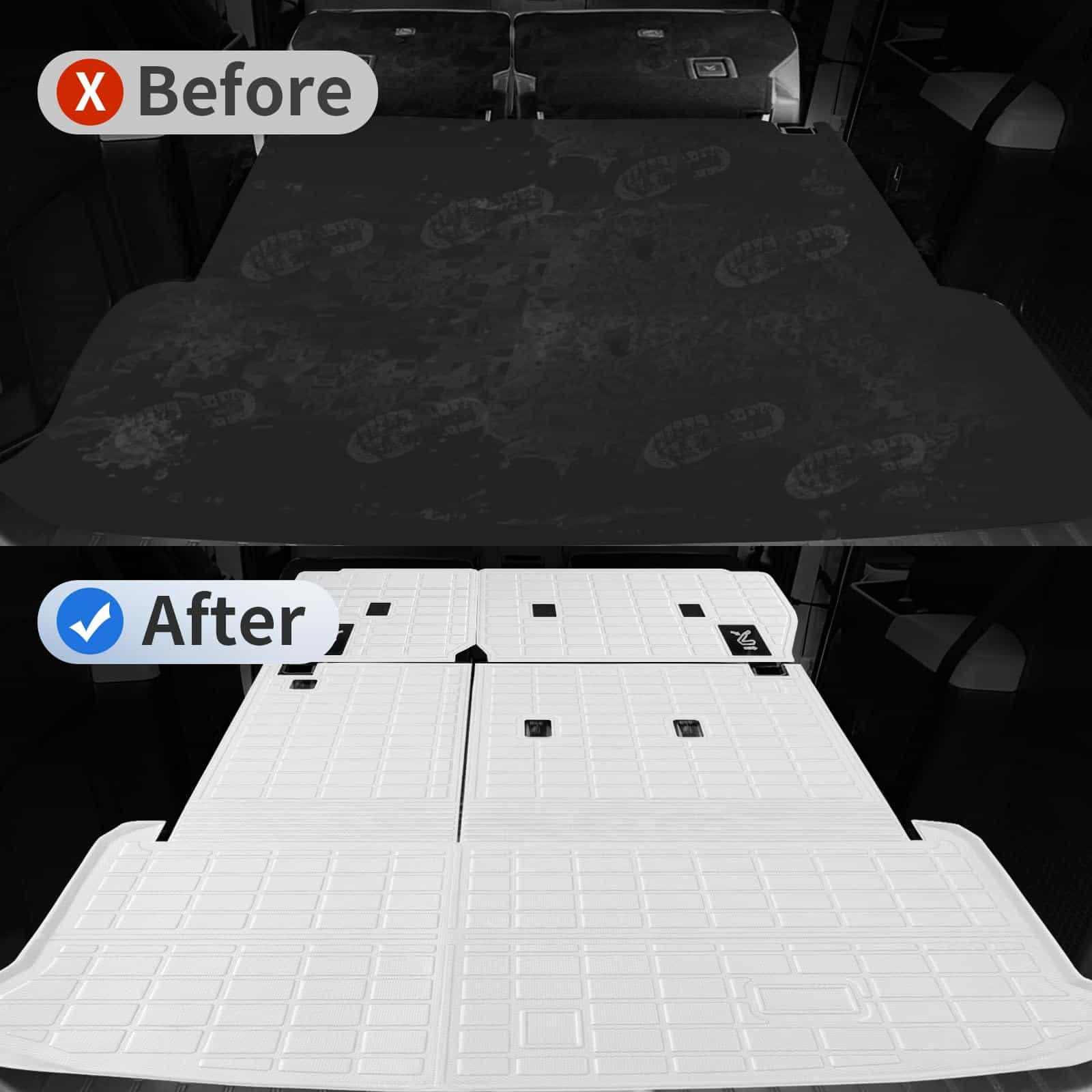 Tapetes para piso TSLDRV para Toyota Grand Highlander 2024 2025 está hecho de tres capas. La primera capa está hecha de material TPE que es impermeable. La capa interior adopta una esponja mute que absorbe el ruido del interior y proporciona más comodidad. Además, la base antideslizante mantiene los tapetes en su lugar y no se mueven. Los tapetes para todo clima de Grand Highlander de TSLDRV están diseñados para ofrecer protección contra todo clima para tu Grand Highlander contra suciedad, barro, sal, lluvia, nieve. Los bordes altos de los tapetes de goma de TPE bloquean eficazmente líquidos, nieve y arena en la almohadilla interior original, manteniéndola limpia y seca en todas las estaciones. El tapete para maletero con tapetes para respaldos para Toyota Grand Highlander es fácil de limpiar. Solo necesitas quitarlos de tu Grand Highlander y sacudirlos o rociarlos con una manguera, y esperar a que se sequen. El tapete para carga resistente para Toyota Grand Highlander de TSLDRV está hecho de TPE libre de tóxicos y sin olor, garantizando una seguridad del 100% incluso en verano caliente.