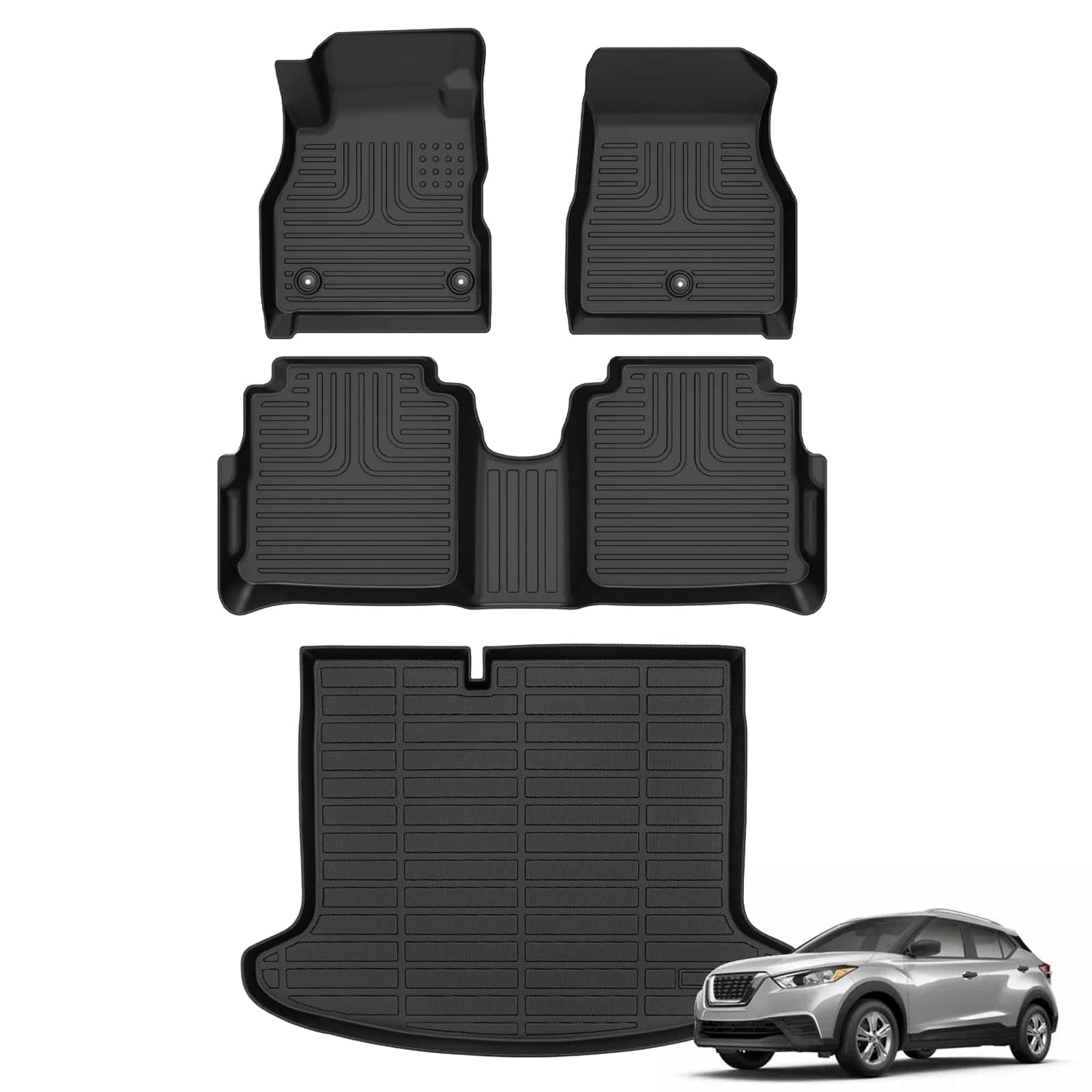 1. Ajuste preciso El juego de tapetes AZYT incluye 1 juego de tapetes para piso y 1 forro para maletero, compatible con Nissan Kicks 2024 2023 2022 2021 2020 2019 2018. Los tapetes para auto utilizan tecnología avanzada de escaneo láser en 3D para cubrir precisamente la alfombra de su automóvil y ajustarse a su automóvil como un guante.