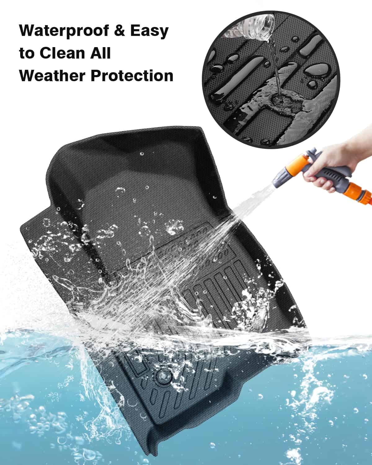 3. Tapetes de Piso y Forro de Maletero Todo Clima: Estos revestimientos de piso y forro de maletero ofrecen protección contra variables externas (como barro, líquido y nieve) y prolongarán la vida del interior del automóvil en todo tipo de clima (lluvia, niebla, nieve, etc). Los tapetes de piso y forro de maletero son fáciles de limpiar, simplemente limpiando con un paño, enjuagando o usando agua y jabón.