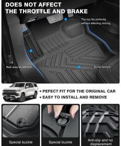 4. Tapetes de Piso 3D y Forro de Maletero: Diseño con bordes altos para una eficaz resistencia al polvo y al agua, sin fugas y desmontable. Los tapetes de piso para Chevrolet Suburban/GMC Yukon XL de 8 Asientos 2021-2025 vienen con hebillas de automóvil originales, estables sin desplazamientos, no afectan el uso del acelerador y el freno, haciendo la conducción más segura.