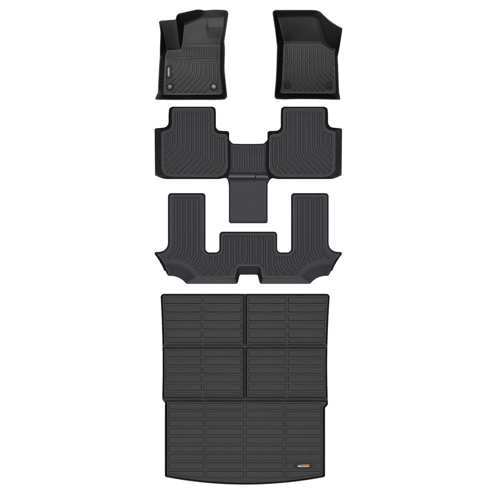 Tapetes para piso y forro de maletero todo clima Binmotor para Volkswagen Atlas 2018-2025 (Asientos de 6 pasajeros en tipo cubo). Juego completo de tapetes para autos de 3 filas TPE, Protector de piso de autos resistente para accesorios de VW Atlas. Ajuste exacto para tu vehículo Volkswagen Atlas (6 asientos tipo cubo) 2018-2025, no compatible con Cross Sport. Los tapetes para piso de autos Binmotor son escaneados con precisión por un escáner láser 3D profesional para que coincidan exactamente con los datos originales del auto. Detalles como el acelerador y el freno se tuvieron en cuenta durante el proceso de diseño, lo que no te afectará al conducir. Material TPE. Los tapetes para piso de autos Volkswagen Atlas 2020 de Binmotor están hechos de materiales de elastómero termoplástico (TPE) de alta calidad, lo que hace que los tapetes para piso de autos sean suaves y duraderos. Este tipo de material de alta calidad no se derrite ni siquiera en clima caliente. Diseño antideslizante. Los tapetes para piso de autos Volkswagen Atlas 2022 están fijados con hebillas en la parte trasera, por lo que la alfombra siempre se mantiene en su lugar, lo que brinda a tu pie más tracción y comodidad. Los tapetes para piso de autos Binmotor te prometen una experiencia de conducción más segura y perfecta. Protección para todo clima. Nuestros accesorios para Volkswagen Atlas 2023 están diseñados con un borde alto que ayuda a contener la lluvia, nieve, hojas caídas fangosas, restos de comida, líquidos o desechos, brindando a tu auto una protección perfecta en todo clima y manteniendo tu auto limpio. Los forros de piso para vehículos Binmotor están diseñados para resistir las condiciones climáticas más extremas. Pruebas múltiples demuestran que no se agrietarán, se doblarán o se descompondrán. Fácil de limpiar. Los tapetes para piso de autos Volkswagen Atlas 2024 son impermeables, simplemente limpia las manchas con un paño húmedo o lávalos y sécalos. Son increíblemente fáciles de limpiar.